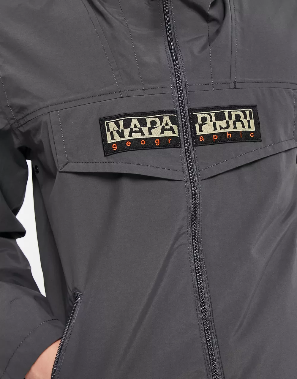 - Napapijri Rainforest zip up water repellent hooded jacket in dark grey