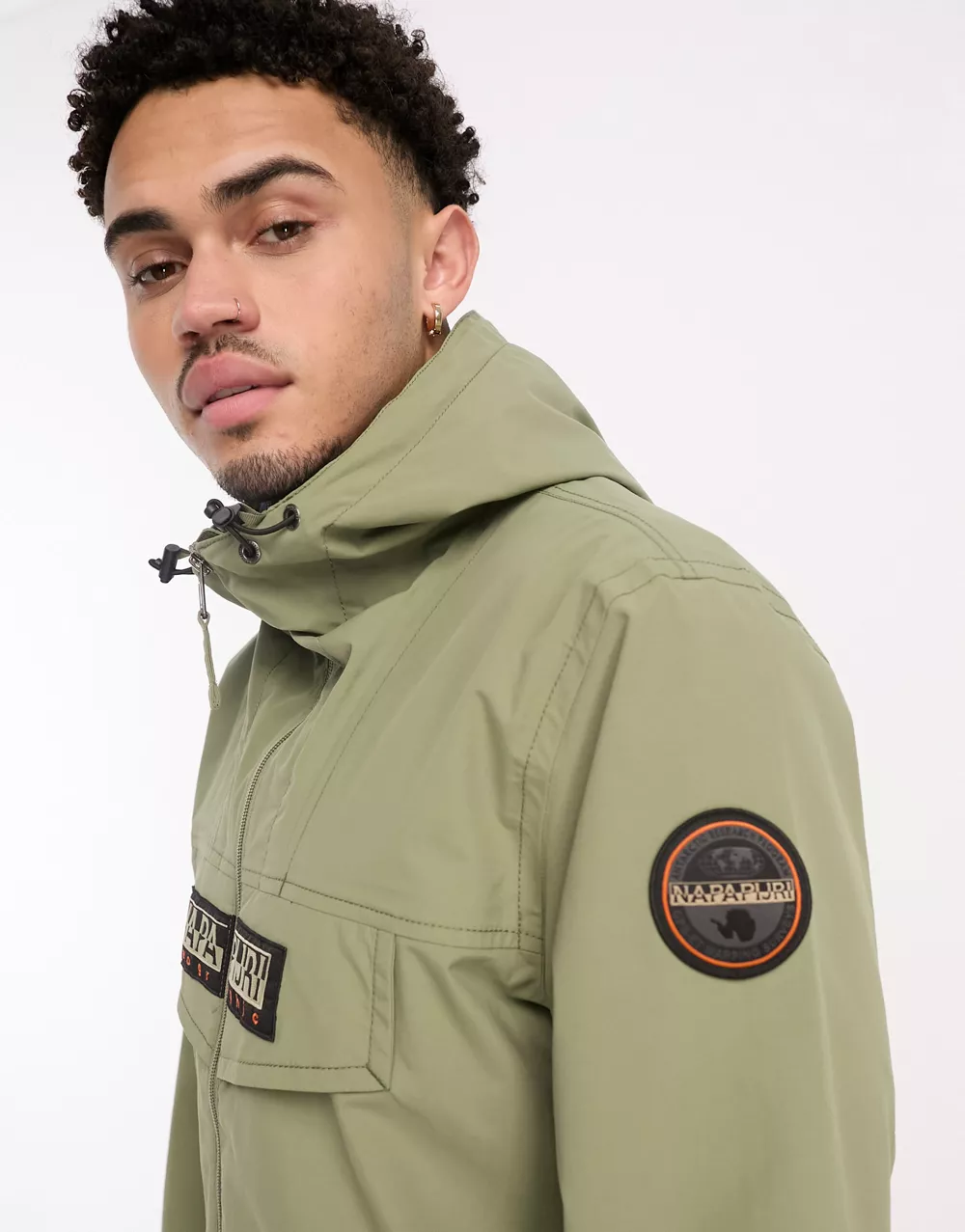 - Napapijri Rainforest zip up water repellent hooded jacket in khaki