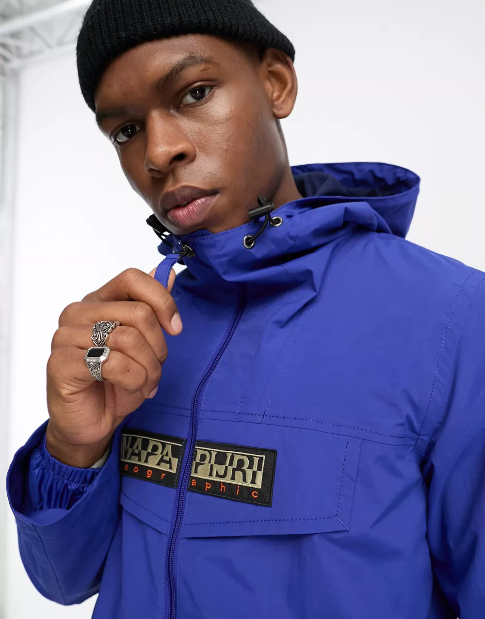 - Napapijri Rainforest zip up water repellent hooded jacket in navy