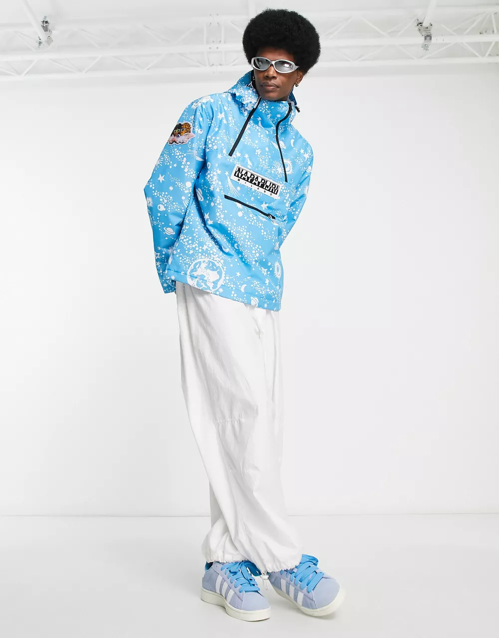 - Napapijri x fiorucci northfarer jacket in all over print blue