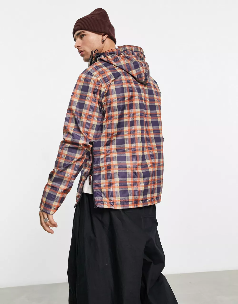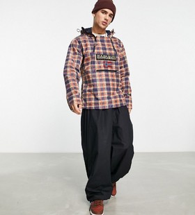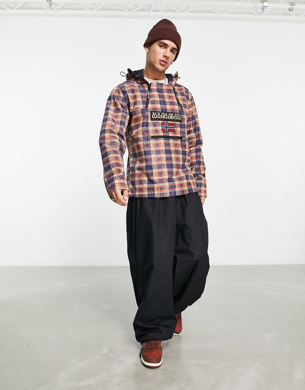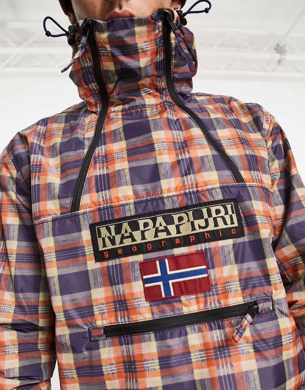 - Napapijri x Liberty Northfarer check print hooded jacket in brown and blue