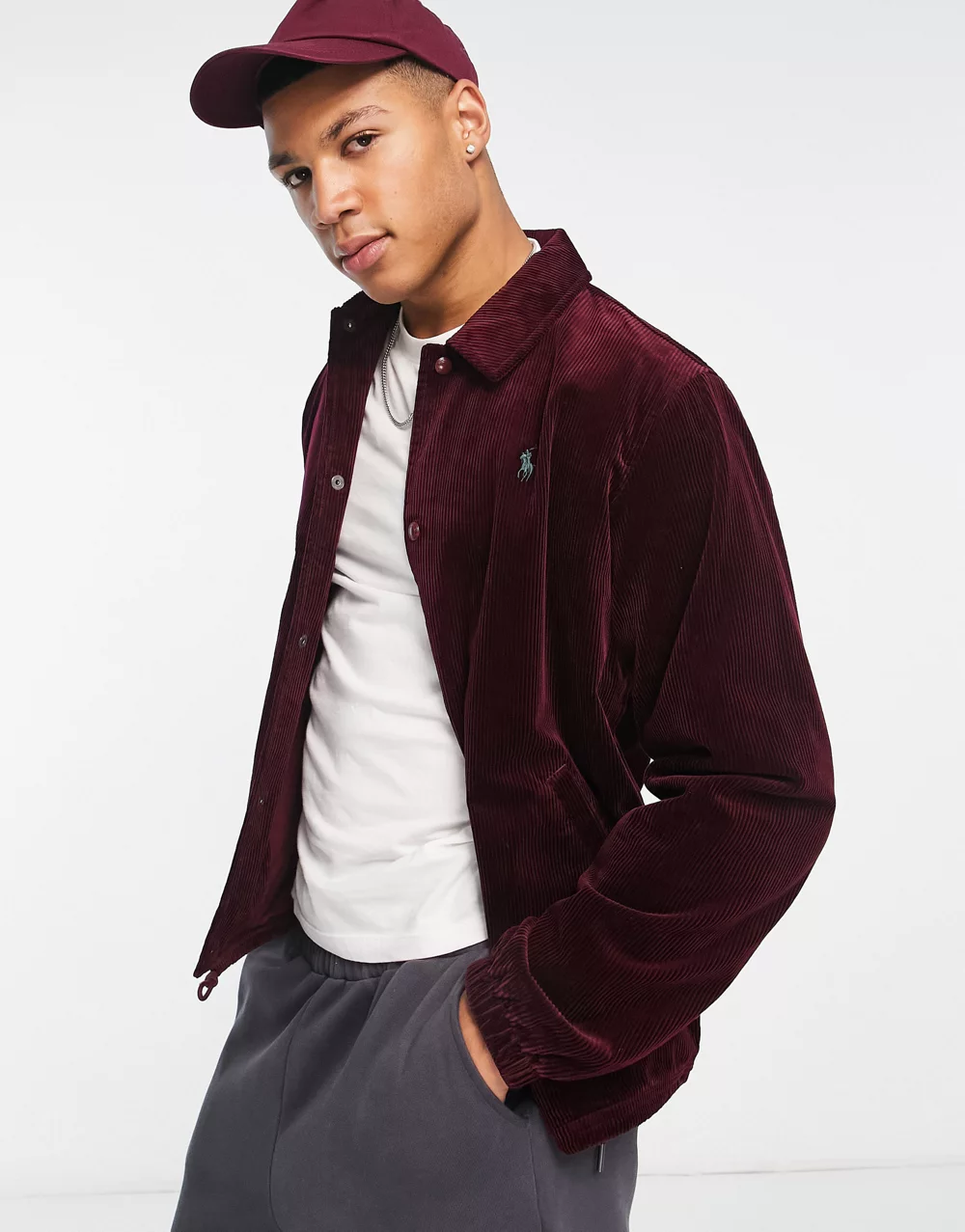 - Polo Ralph Lauren cord coach jacket in burgundy