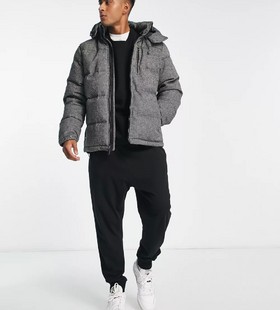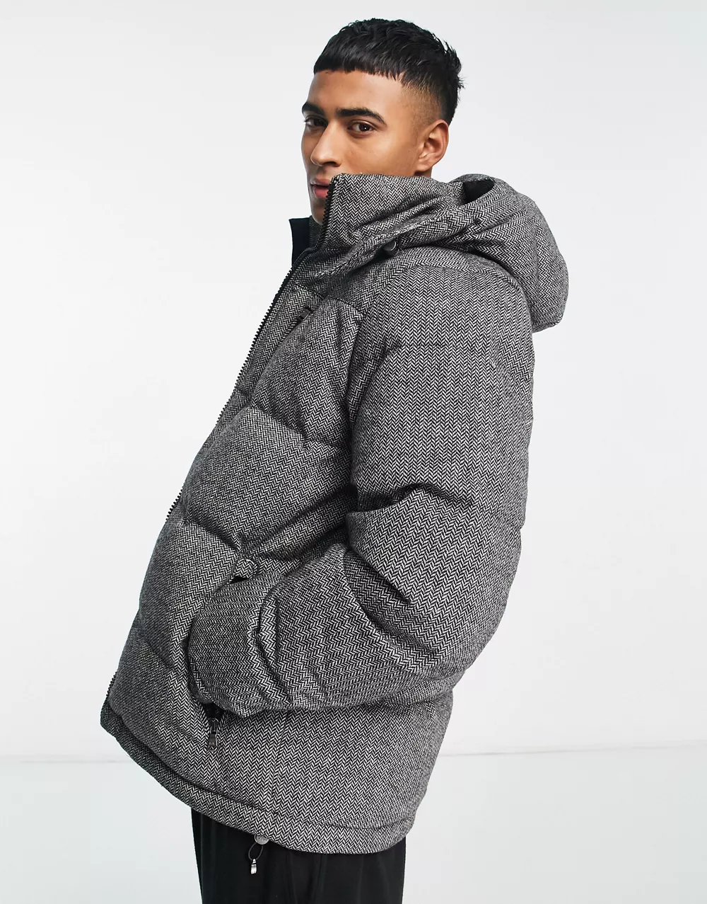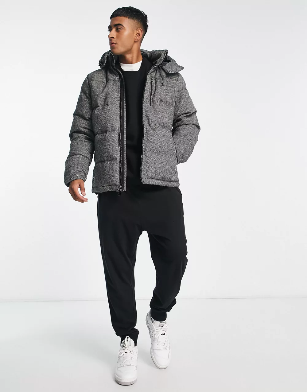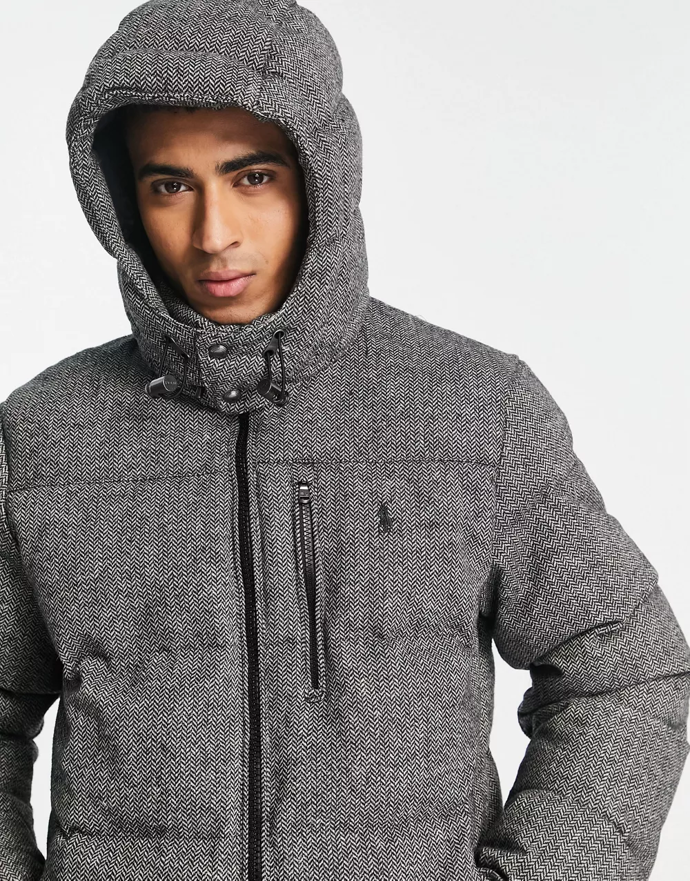- Polo Ralph Lauren El Cap down fill herringbone wool hooded puffer jacket in black/cream
