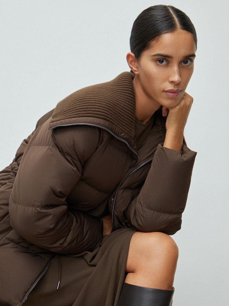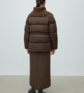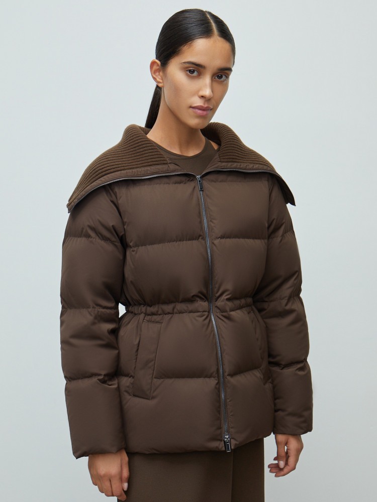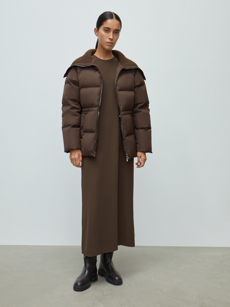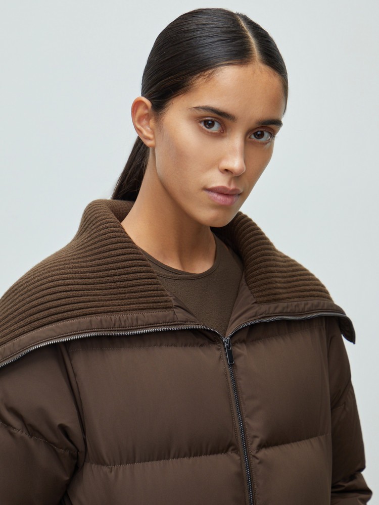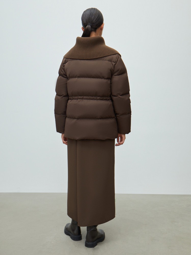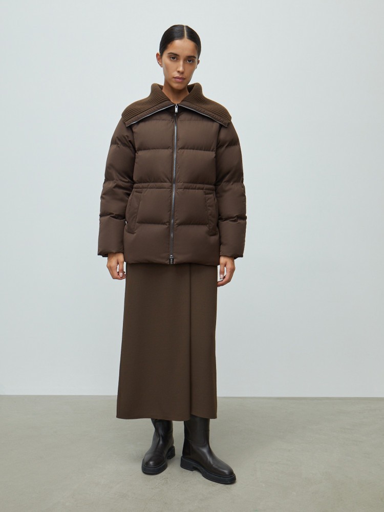Аккуратный пуховик с широким воротником из натуральной шерсти: если понадобится, застегните молнию, и он полностью закроет шею. Мы предусмотрели вязаные манжеты и карманы на кнопках, а также кулиску, чтобы регулировать длину пуховика. Модель из плотной и мягкой ткани, с наполнителем из натурального утиного пуха.