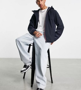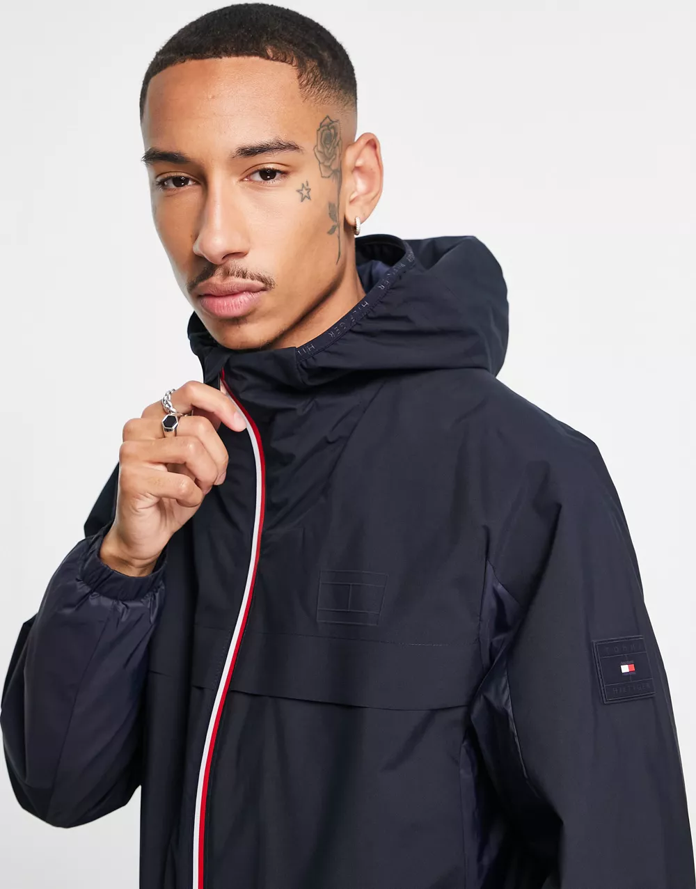 - Tommy Hilfiger polyester blend tech icon stripe zip hooded jacket in navy - NAVY