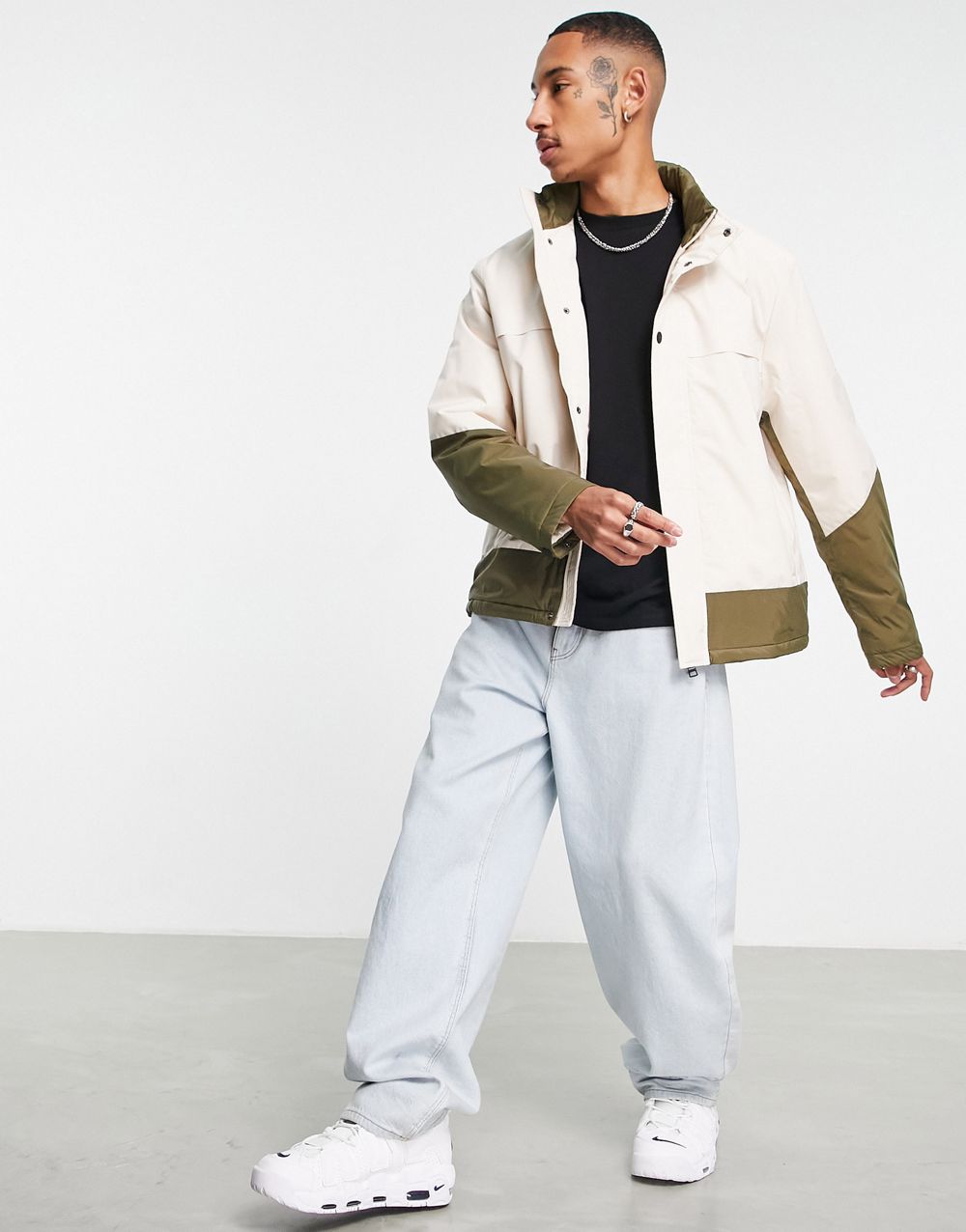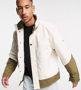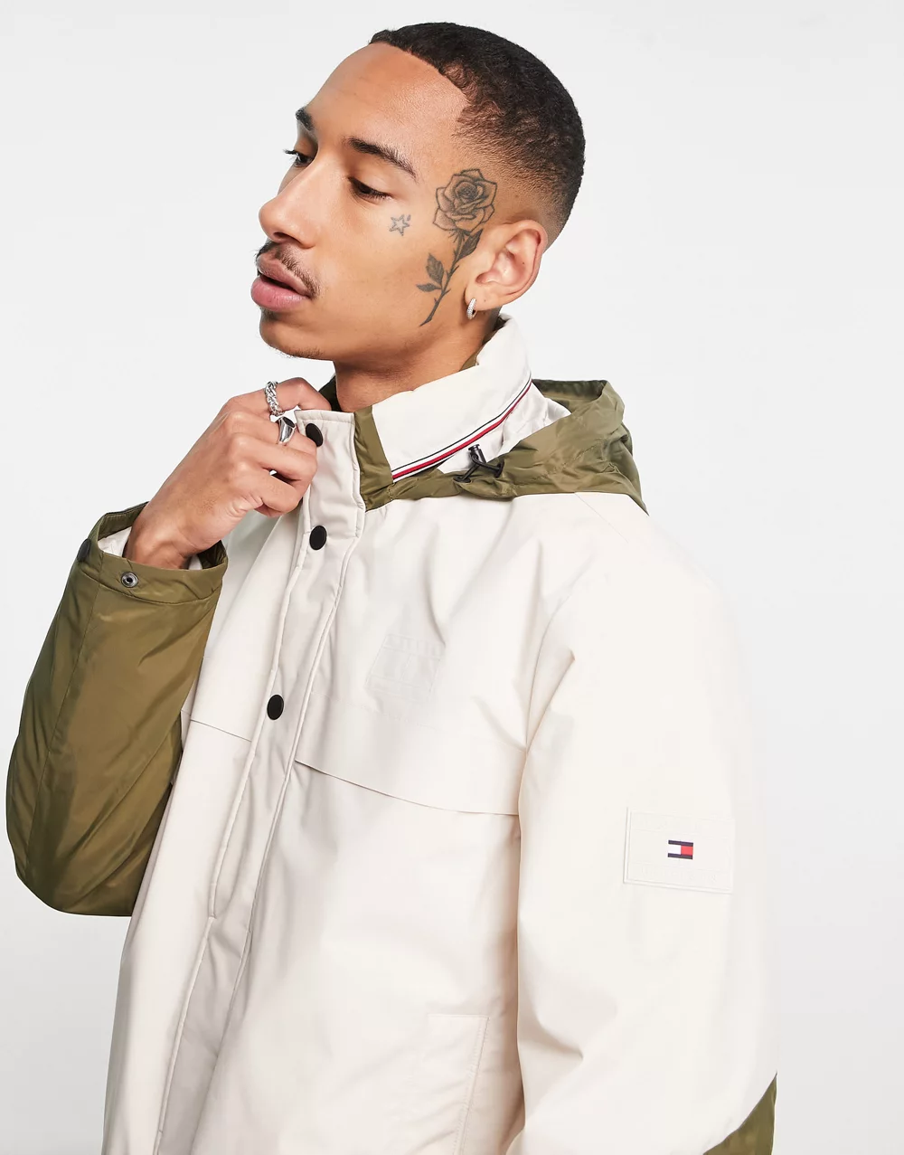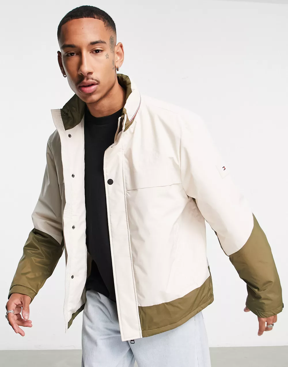 - Tommy Hilfiger polyester blend tech stand collar colourblock jacket in cream - CREAM