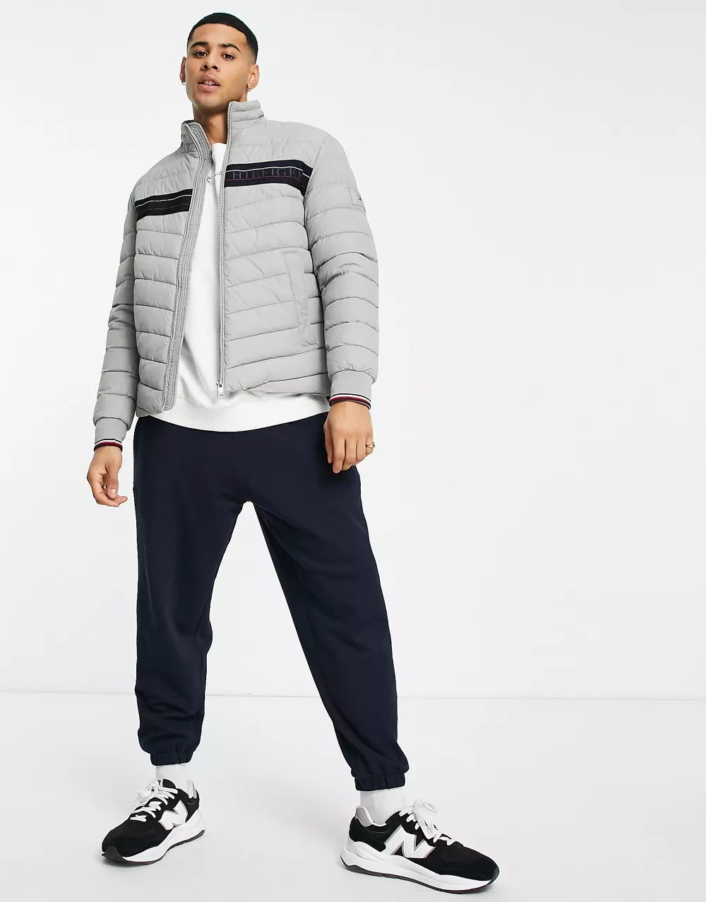 - Tommy Hilfiger stand collar taping puffer jacket in grey