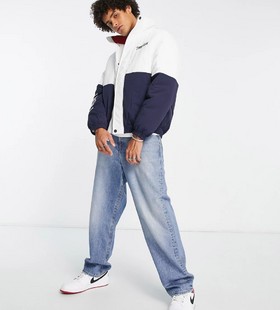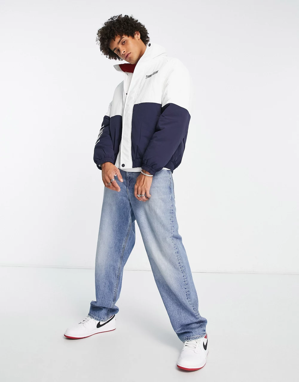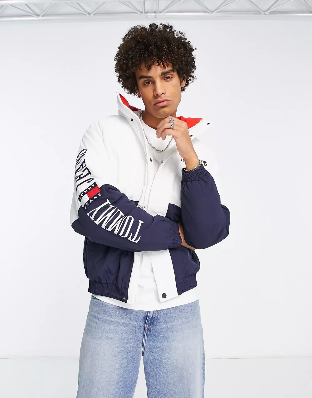 - Tommy Jeans archive sleeve logo colourblock jacket in navy