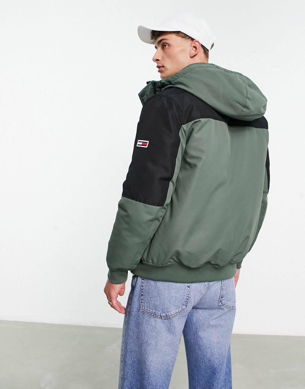- Tommy Jeans polyester colourblock hooded tech bomber jacket in green