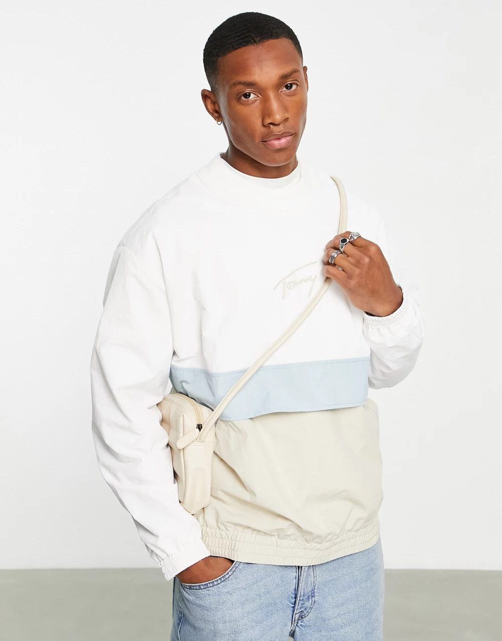- Tommy Jeans signature nylon blend overhead jacket sweater - WHITE