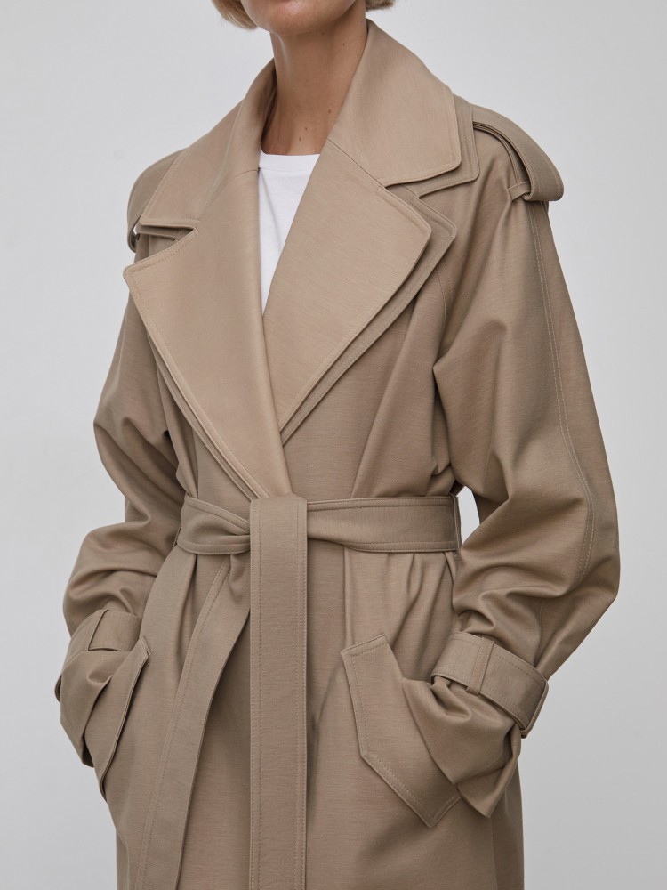 Тренч с двойным воротником, в стиле оверсайз. Универсальная модель на каждый день с узнаваемыми элементами тренча: погонами, карманами-клапанами и кокеткой сзади.