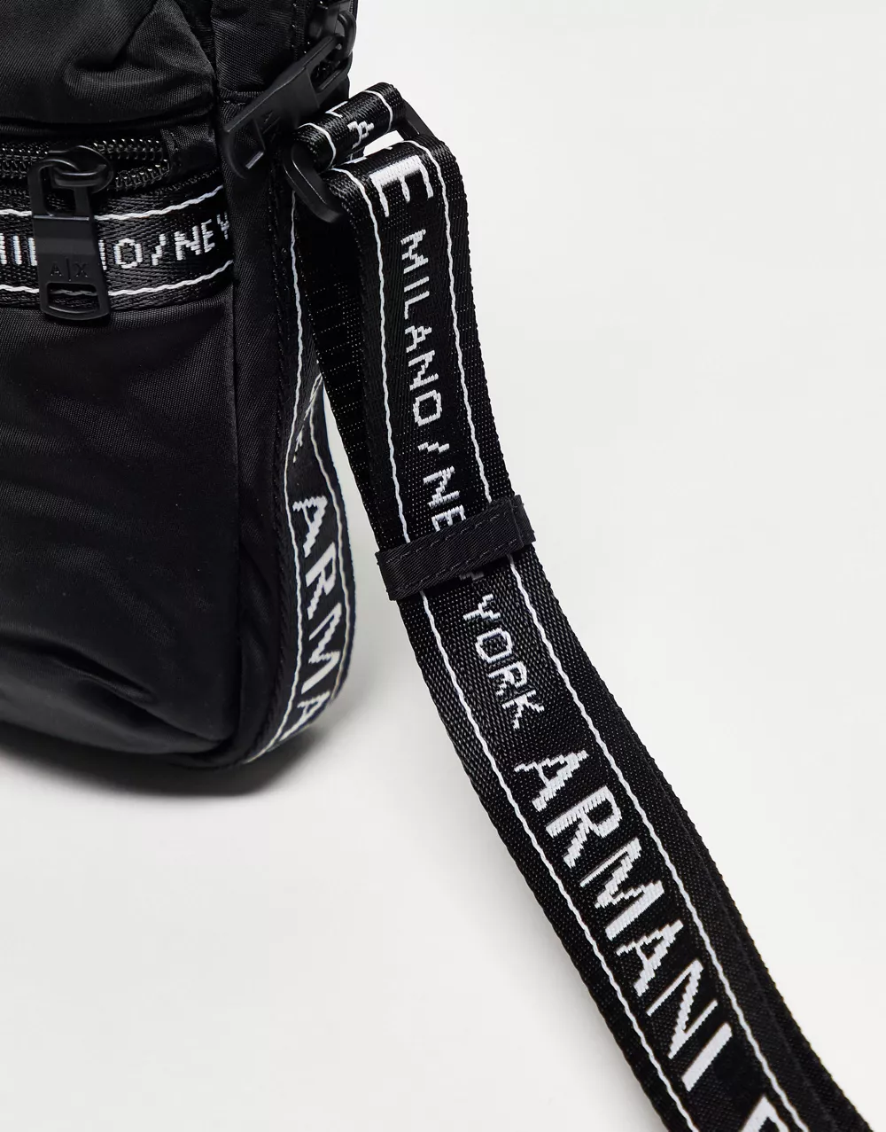 Armani Exchange logo flight bag in black