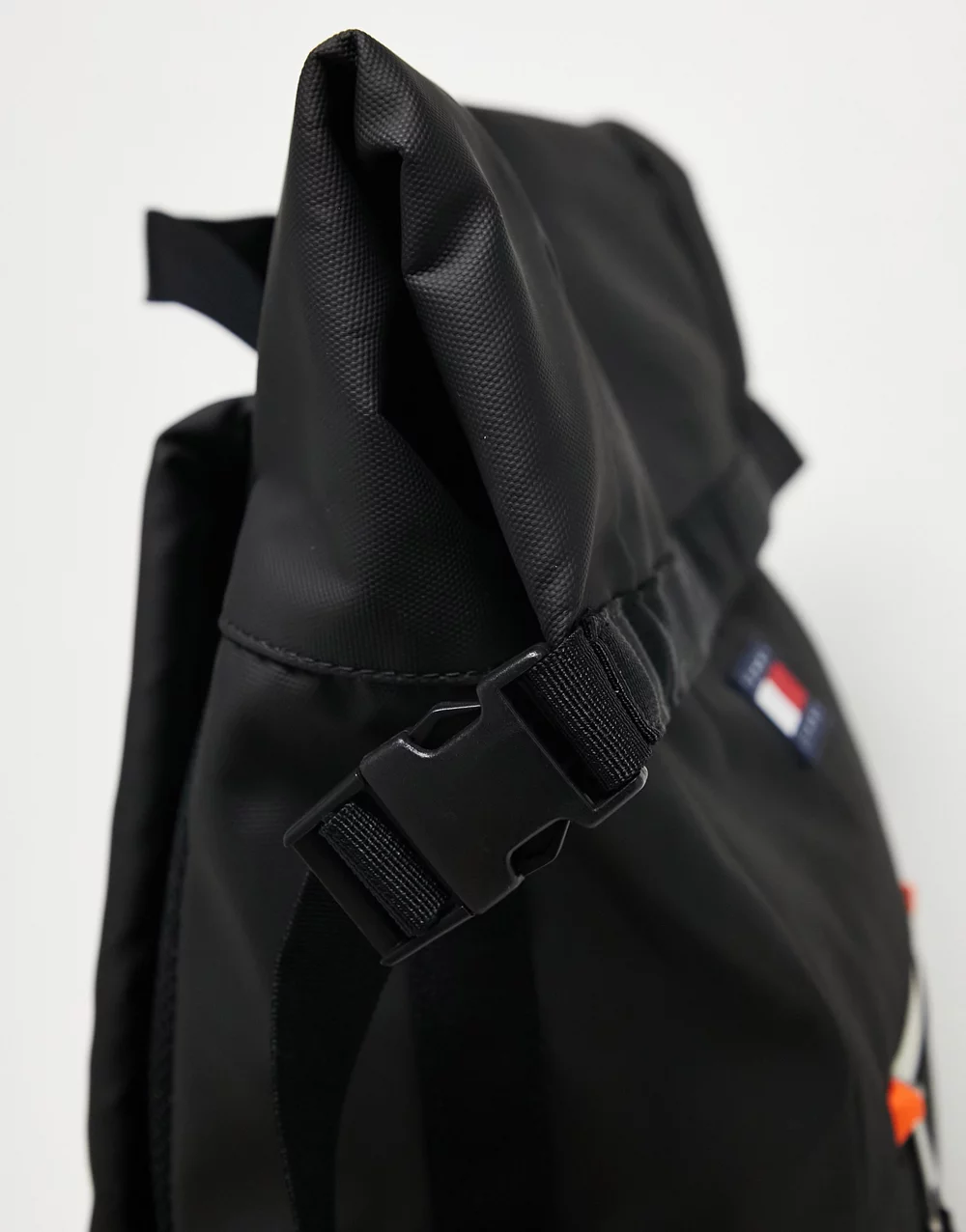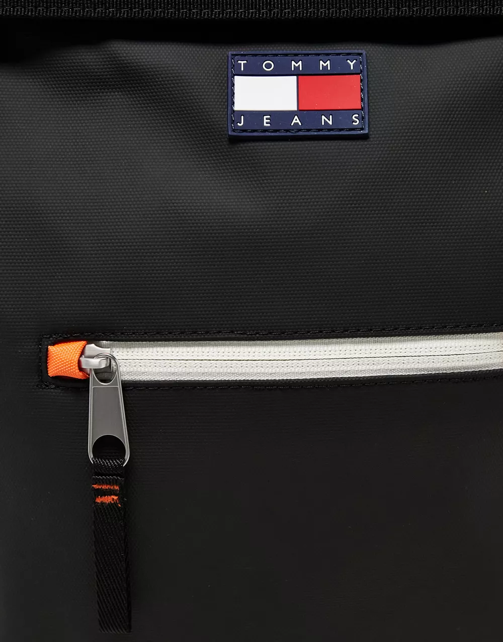Tommy Jeans flag logo fleece half zip sweatshirt in black