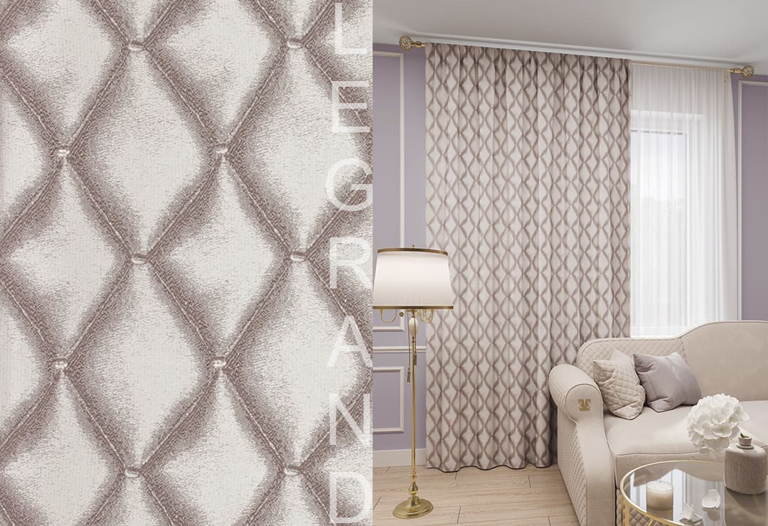 Портьера "Марсель" выполнена из жаккардовой ткани с интересной фактурой. На атласном фоне классические ромбы, имитирующие каретную стяжку. Такая портьера станет украшением интерьера как в классическом, так и в современном стиле. Особое плетение с размытыми контурами делает орнамент объемным. Дополнительным декором портьеры служат блестящие люрексные элементы.
