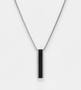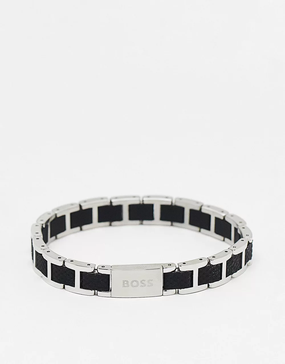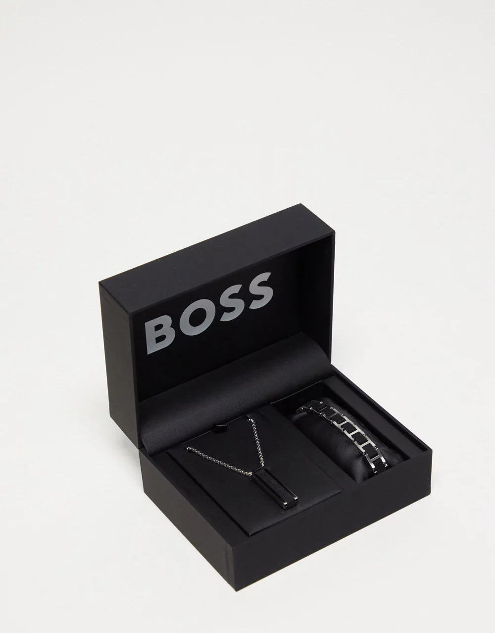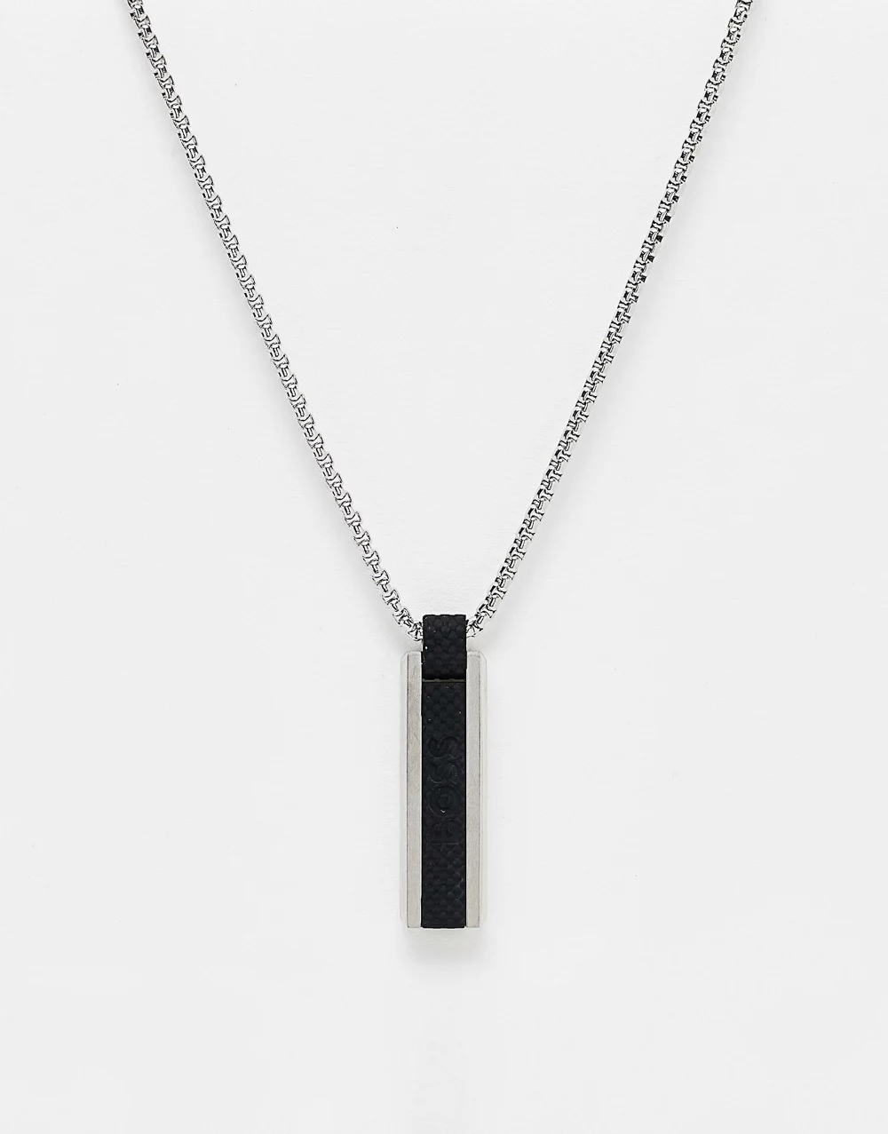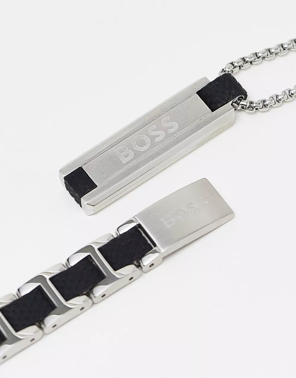 - Boss mens chain necklace with pendant and bracelet in black silicone and stainless steel 1570151