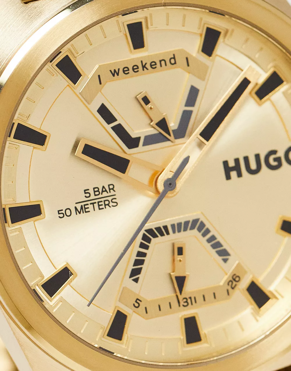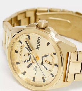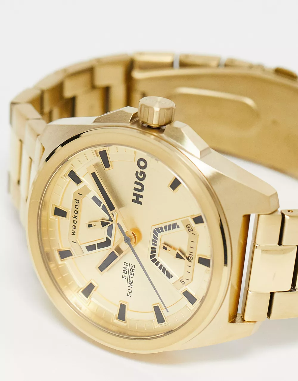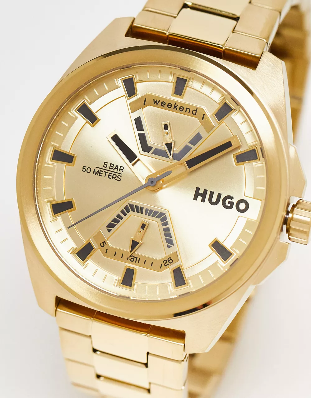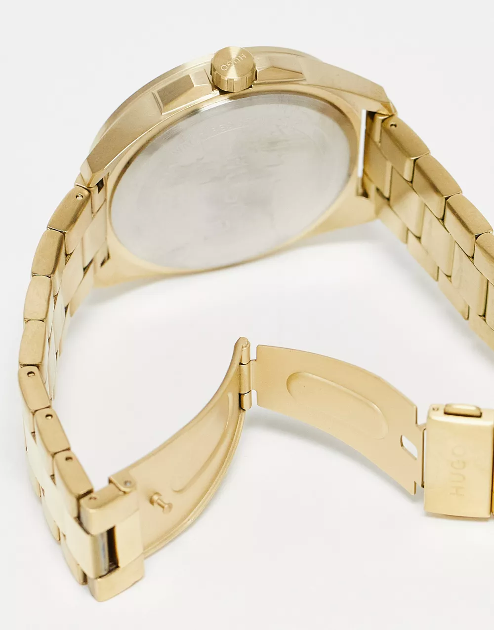 - Hugo mens bracelet watch with gold dial in gold 1530243