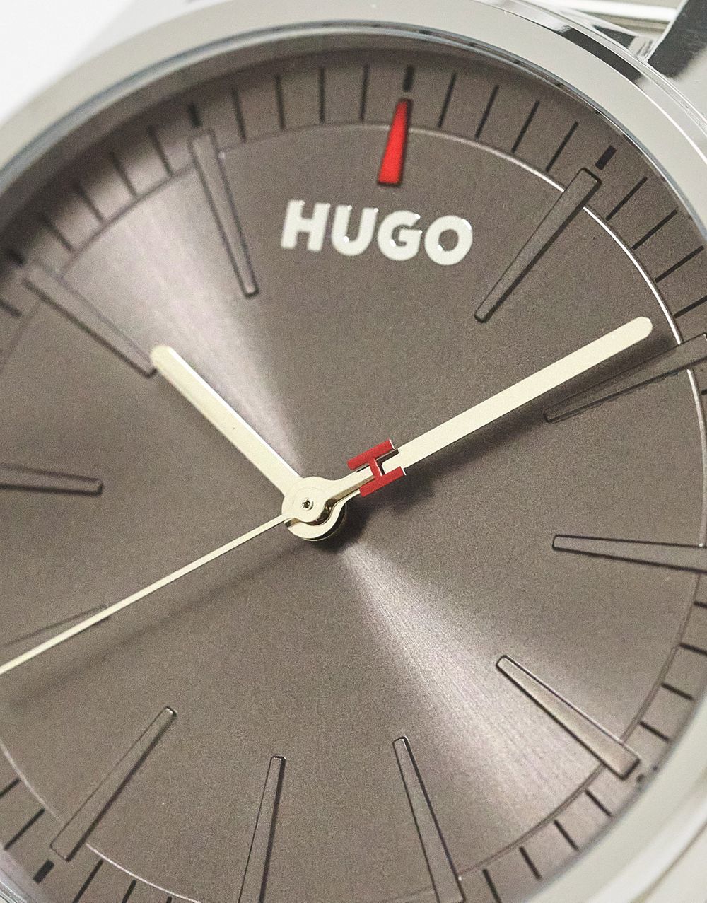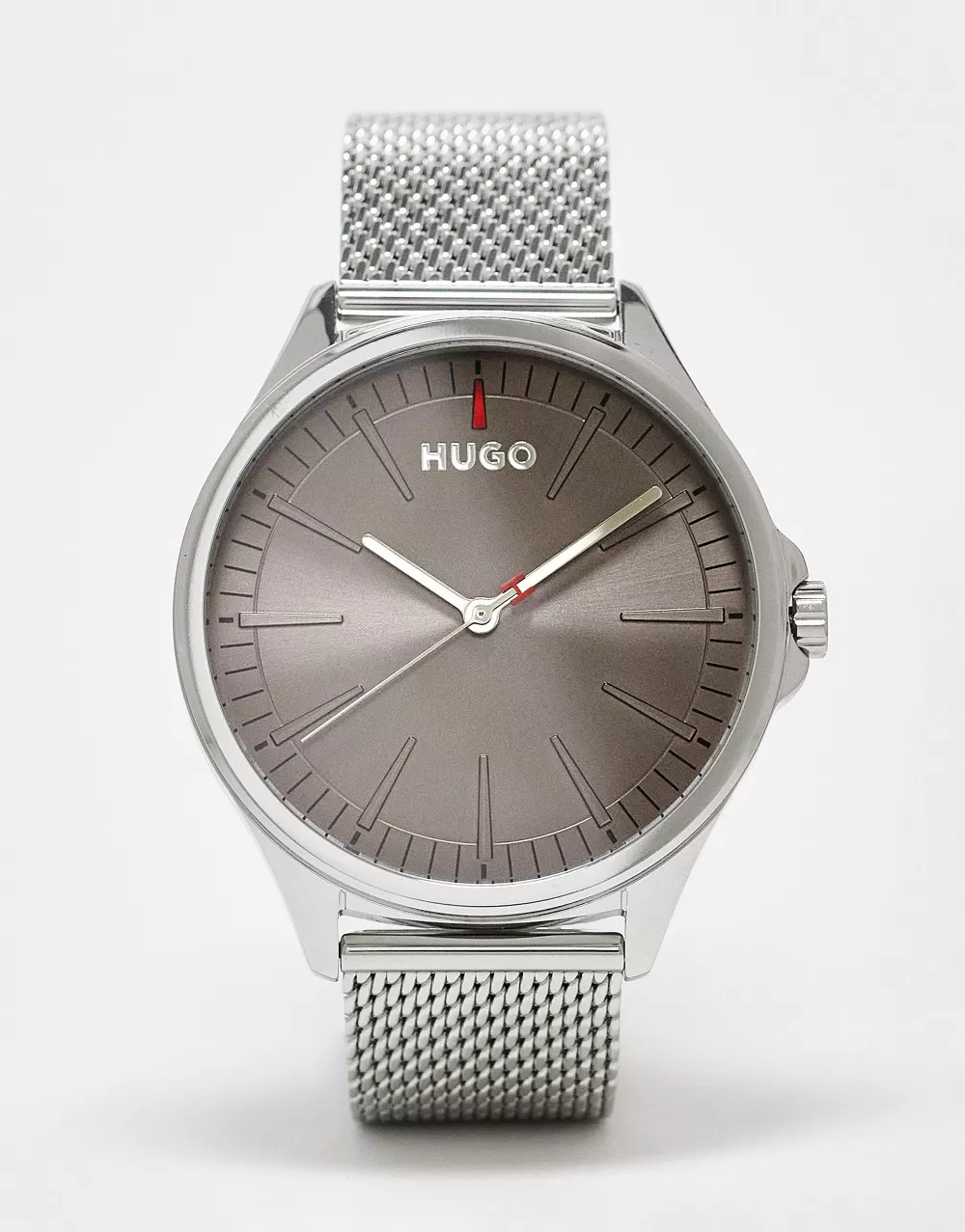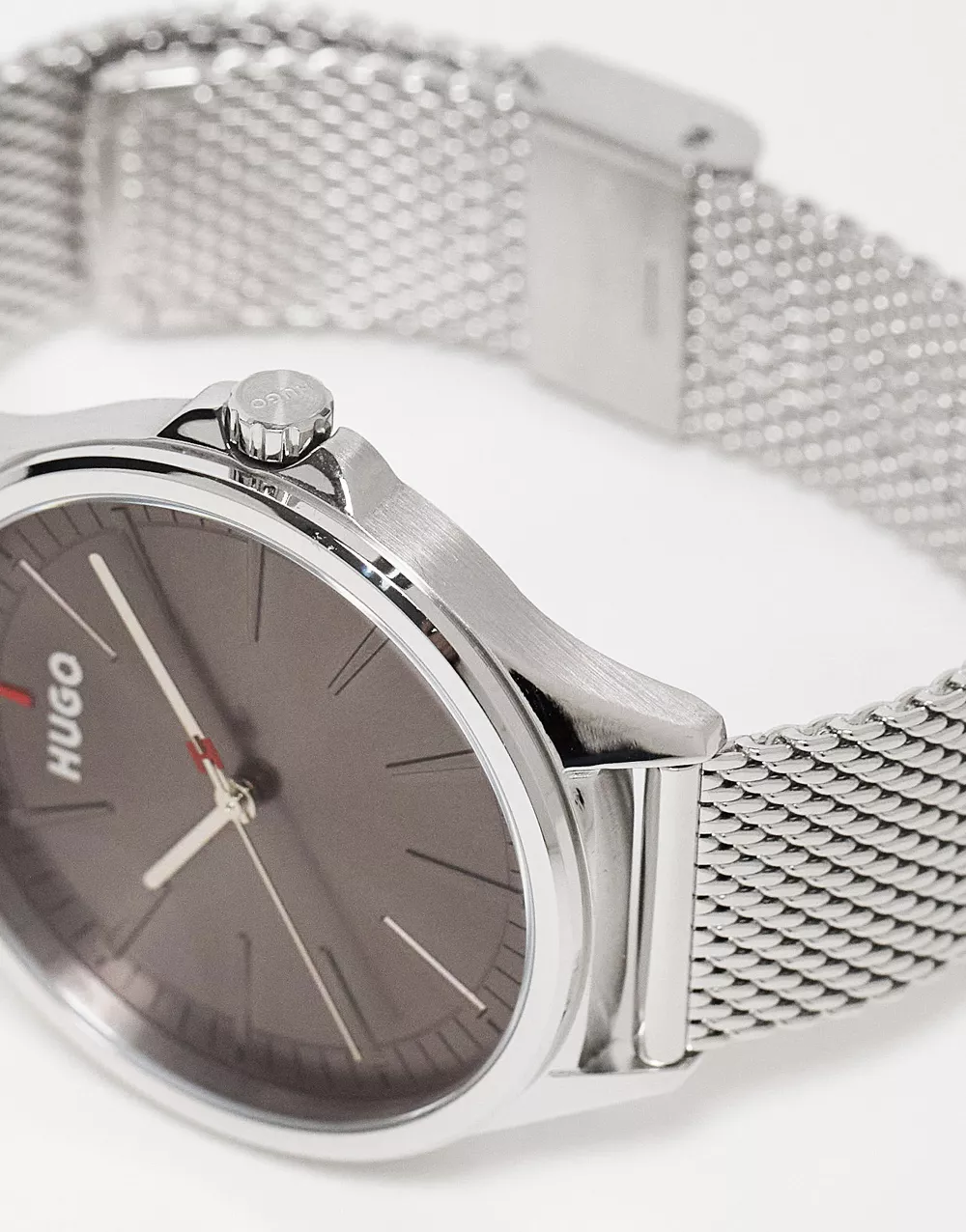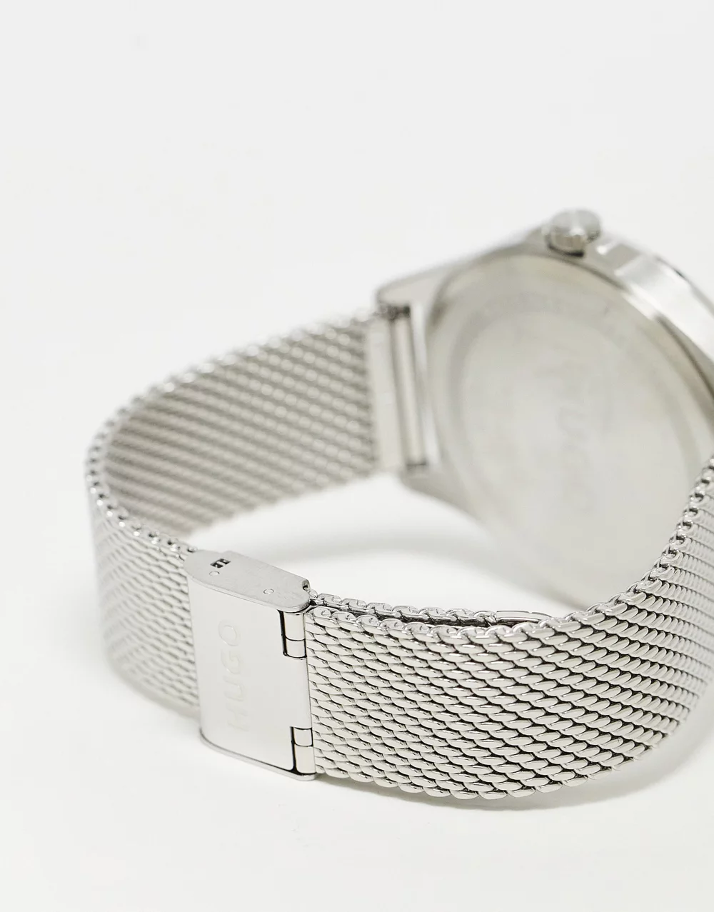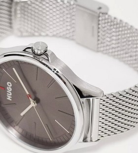 - Hugo mens mesh strap watch with grey dial in silver 1530135