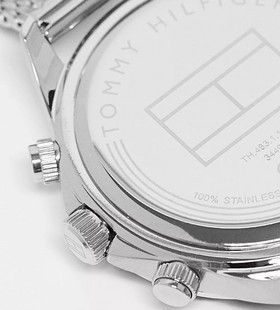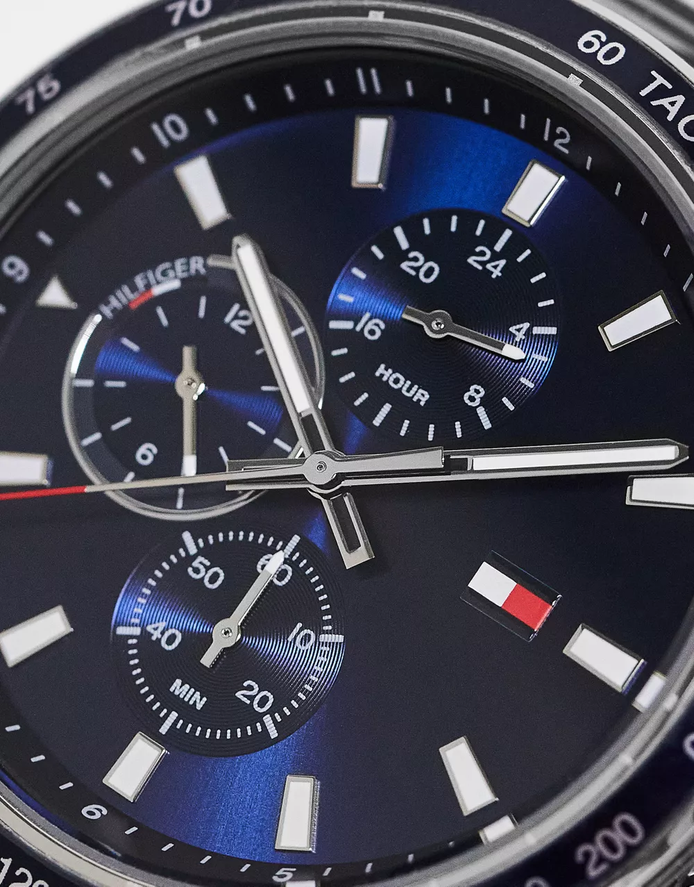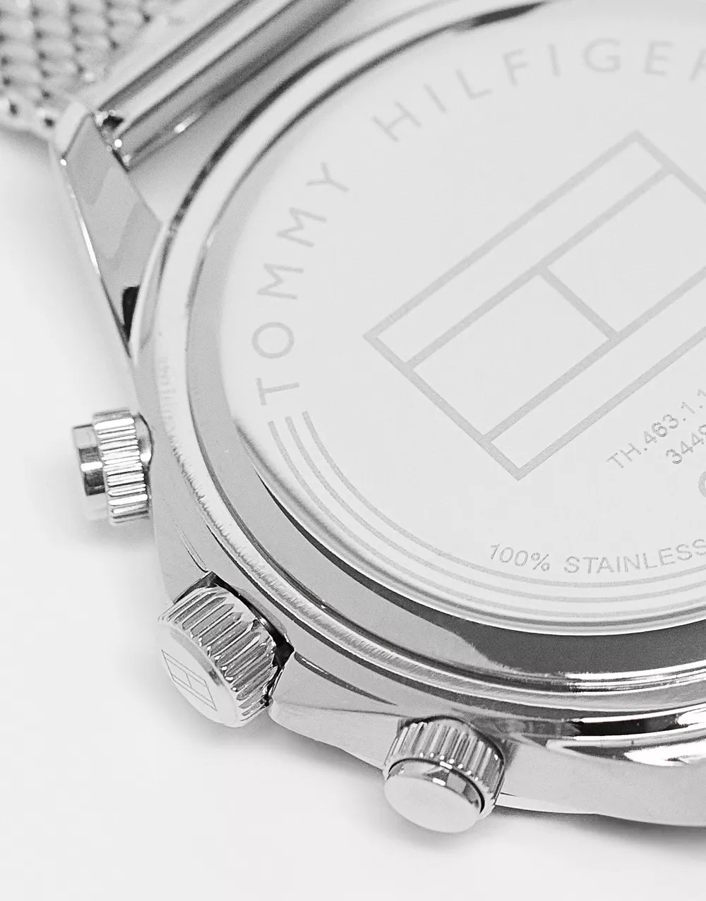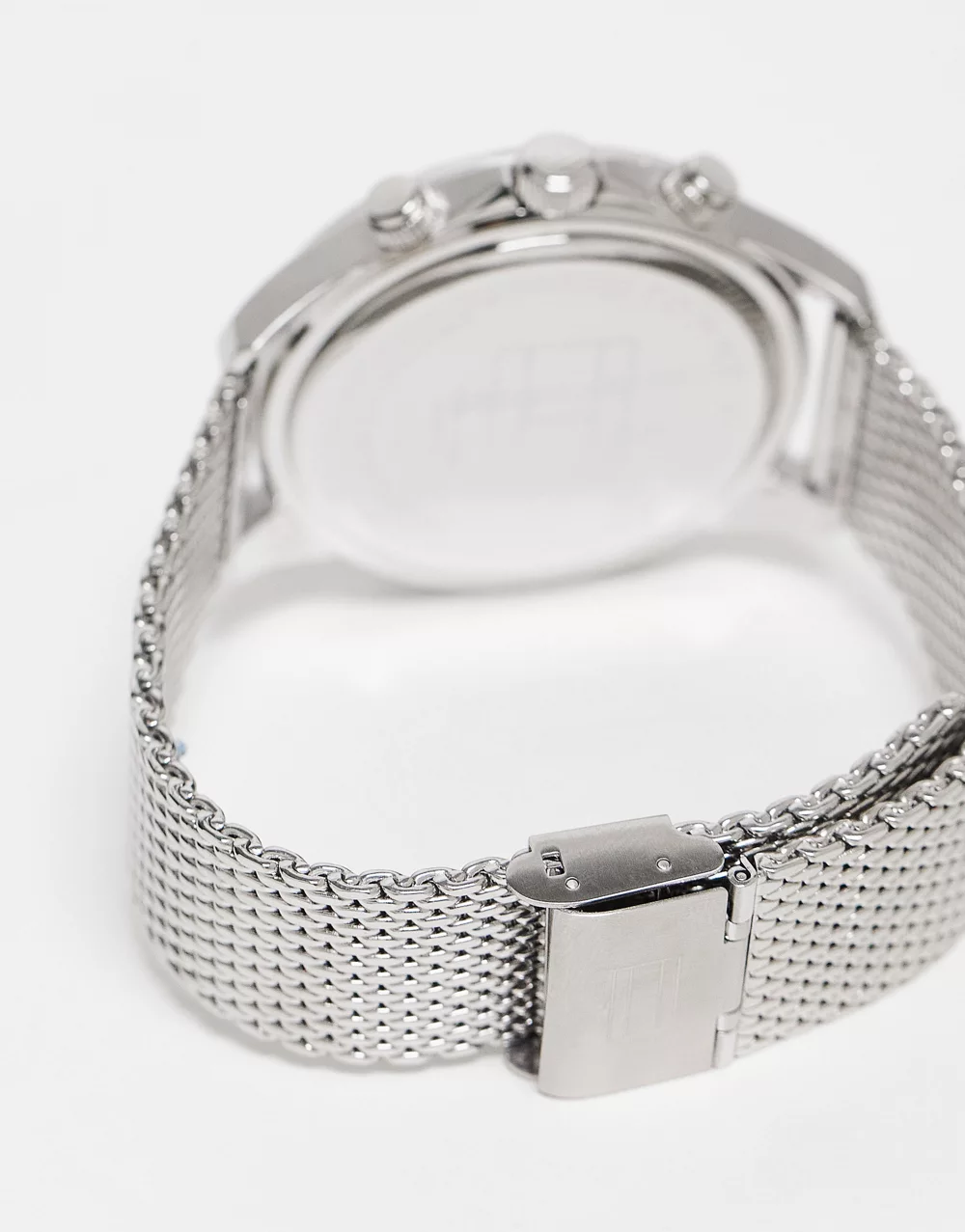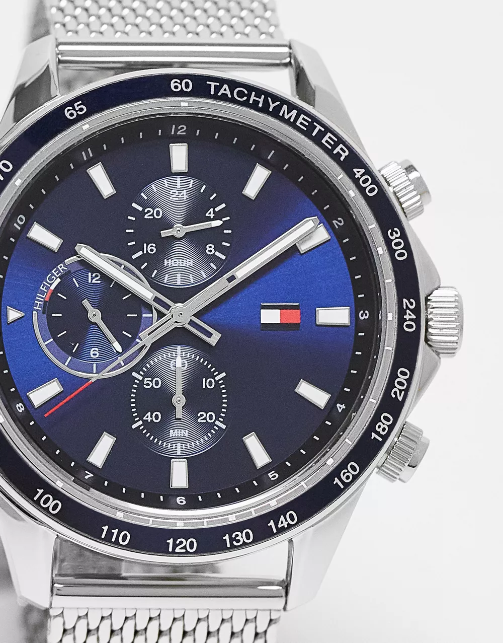 - Tommy Hilfiger mens mesh bracelet watch with navy dial in silver 1792018