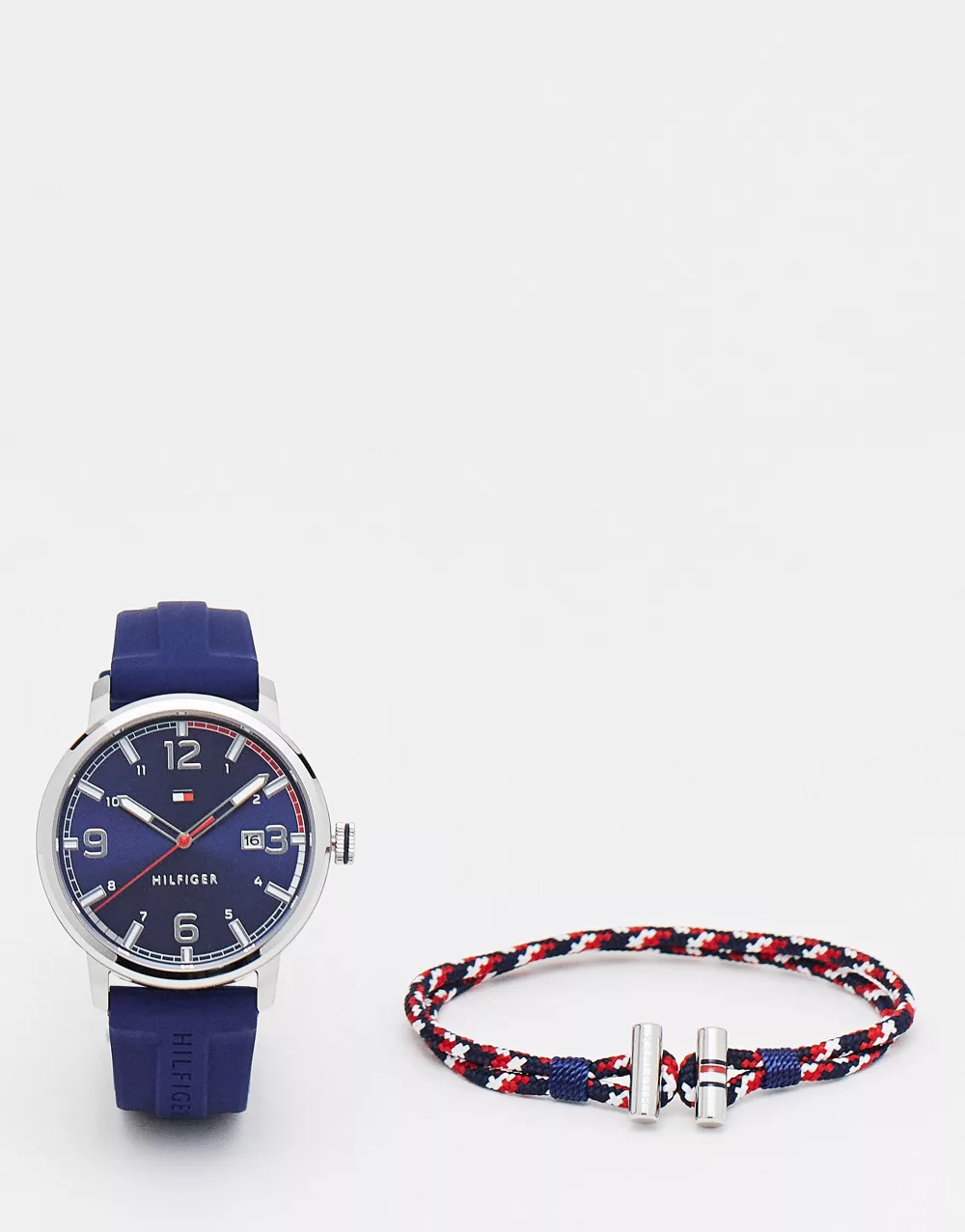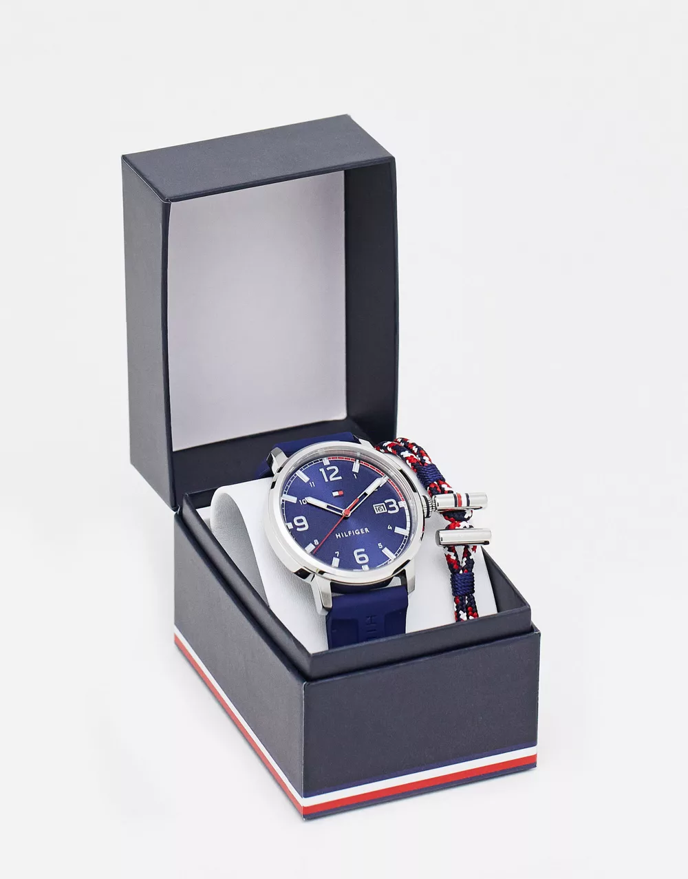 - Tommy Hilfiger mens silicone watch and braided bracelet gift set in navy
