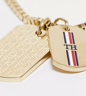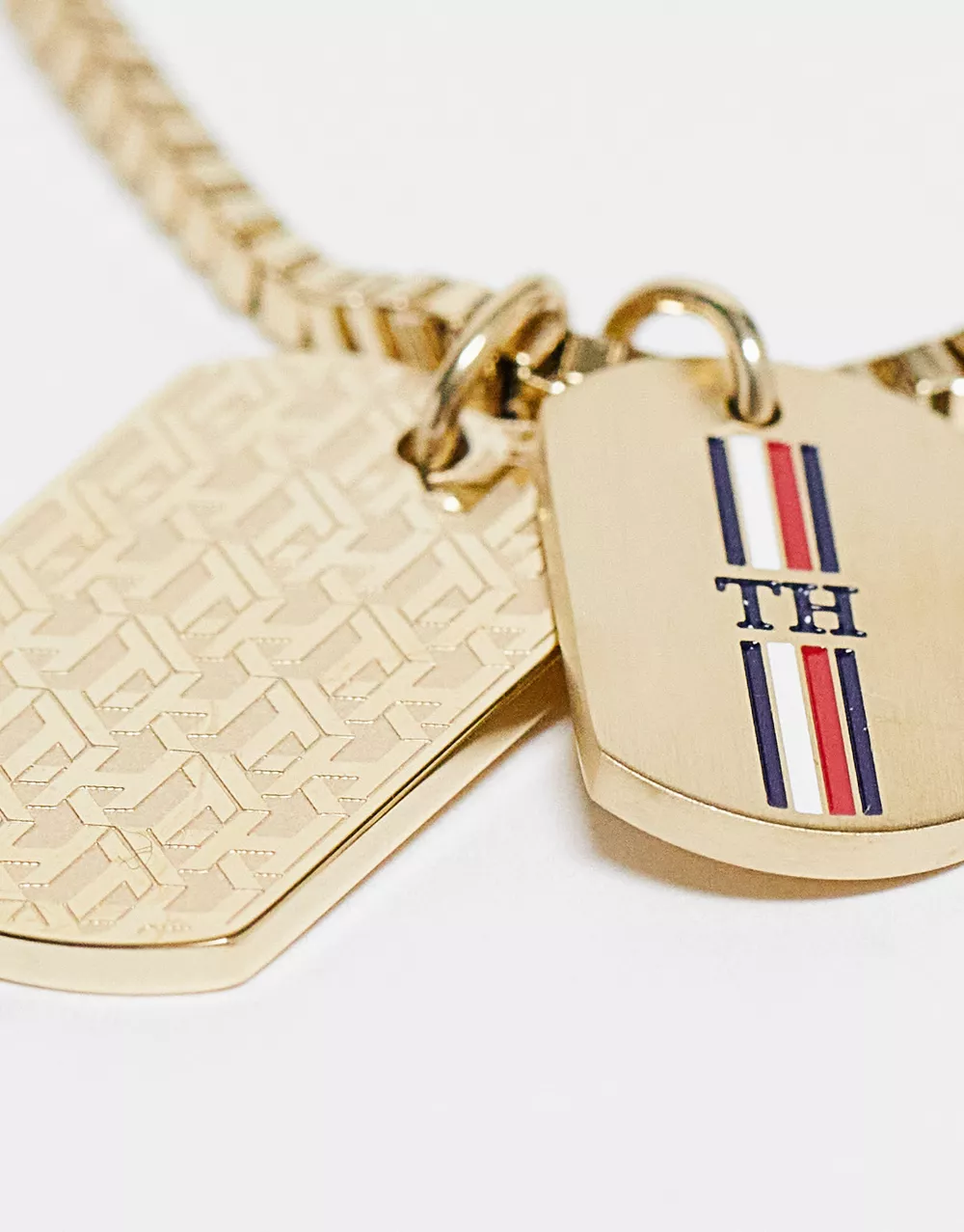- Tommy Hilfiger neck chain in gold with double dog tag pendants