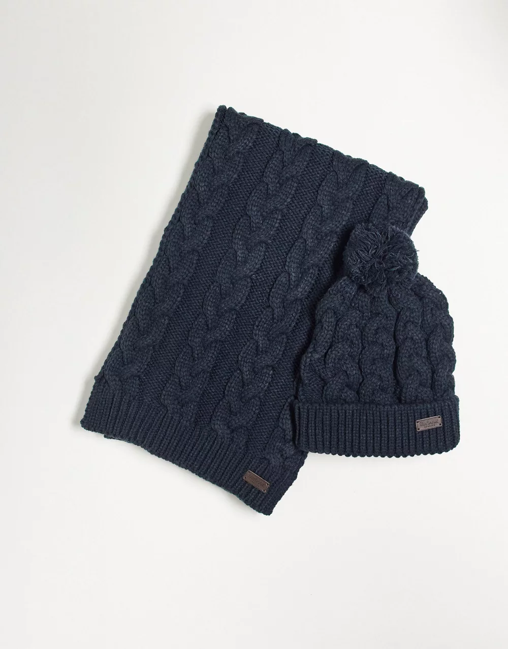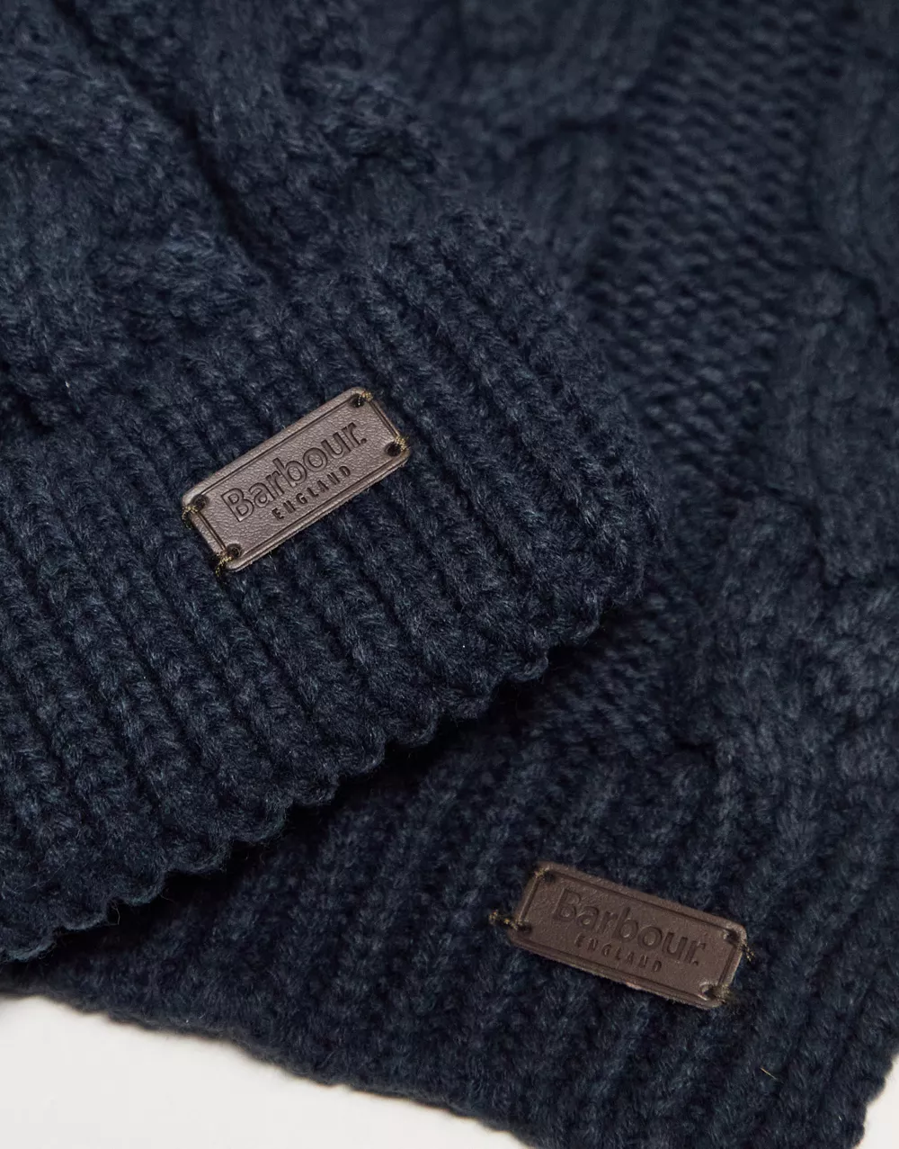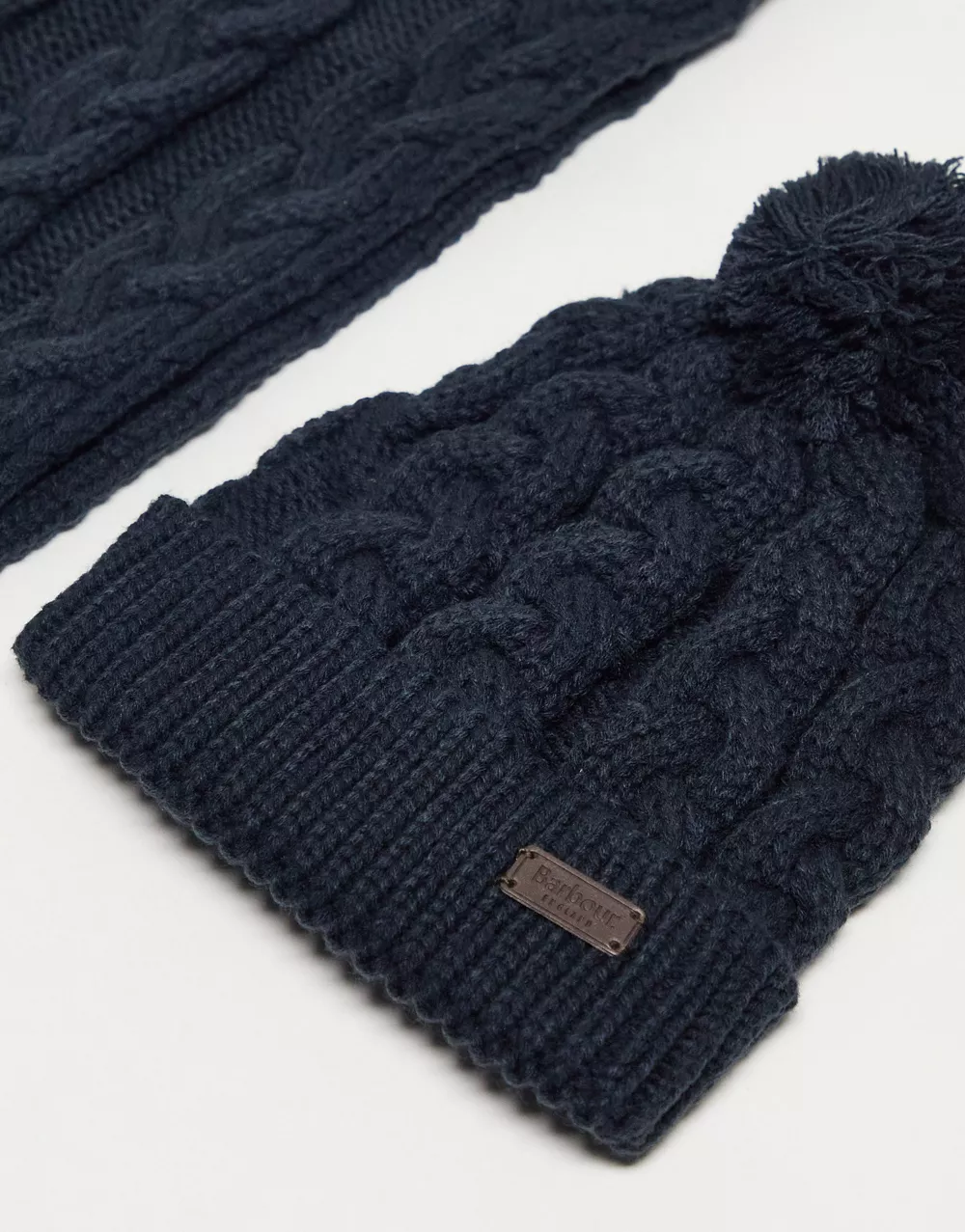 - Barbour Highgate beanie hat and scarf gift set in navy