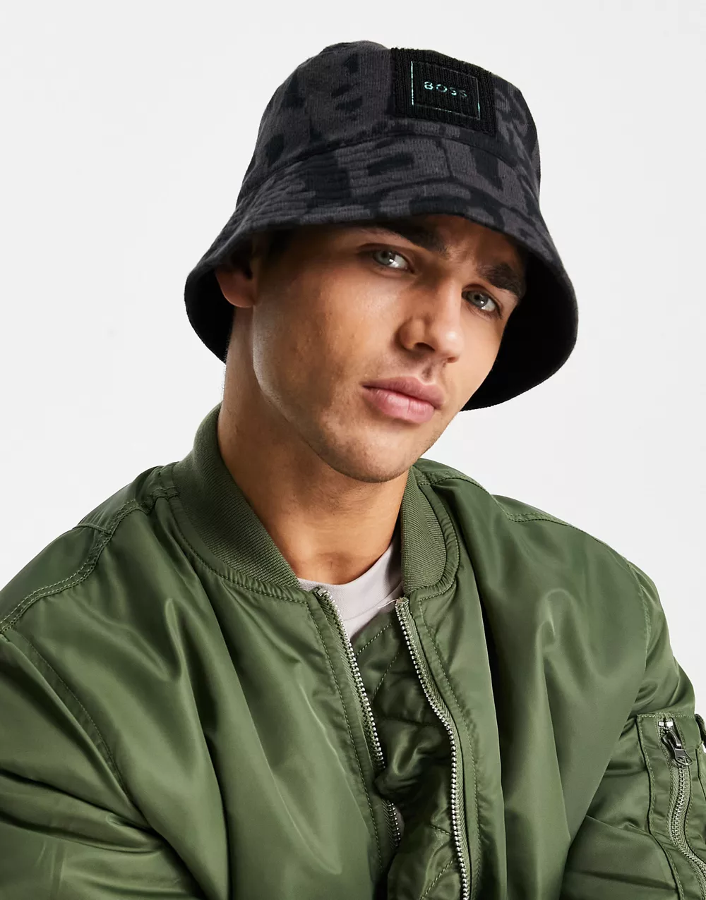 - BOSS Green Alotus reversible bucket hat in black with detachable branding