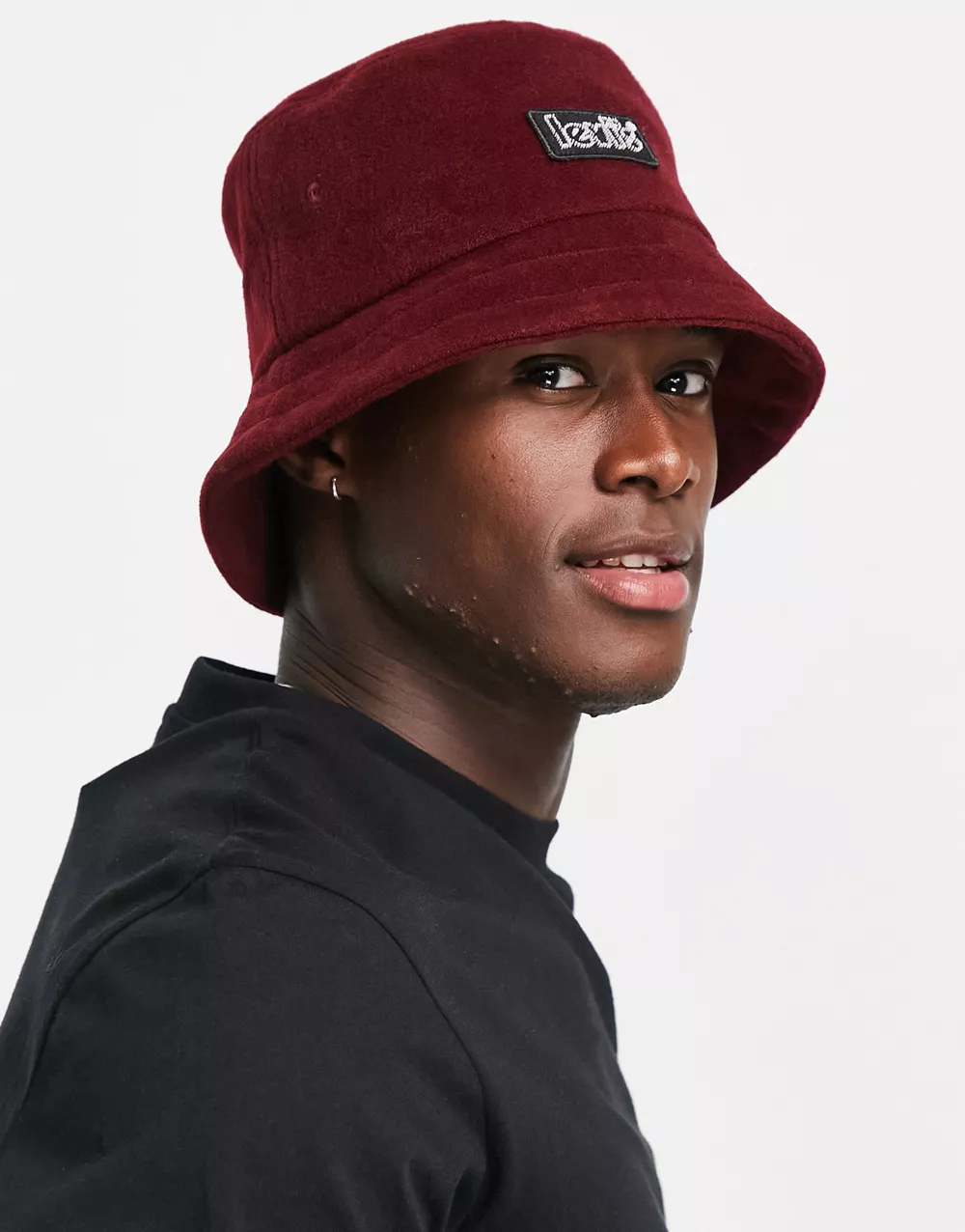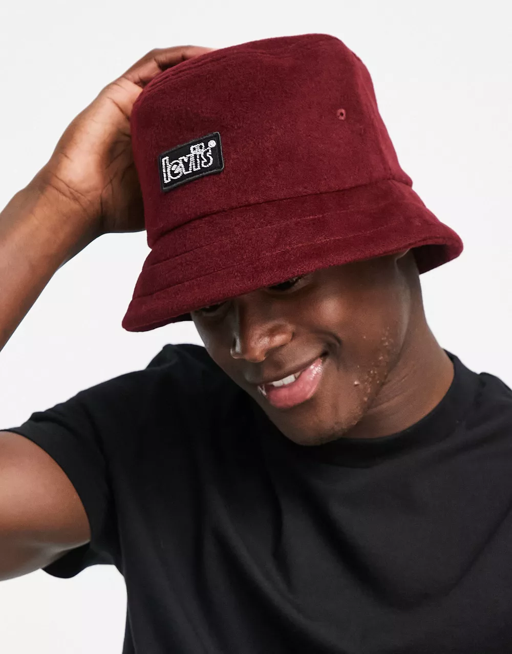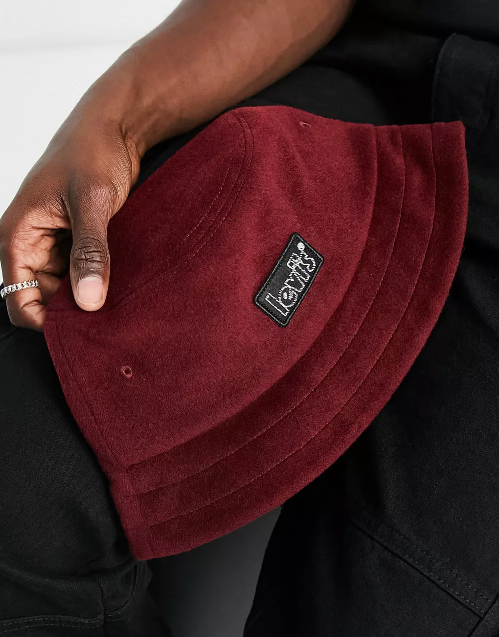 - Levi's cosy poler fleece bucket hat in burgundy red with logo