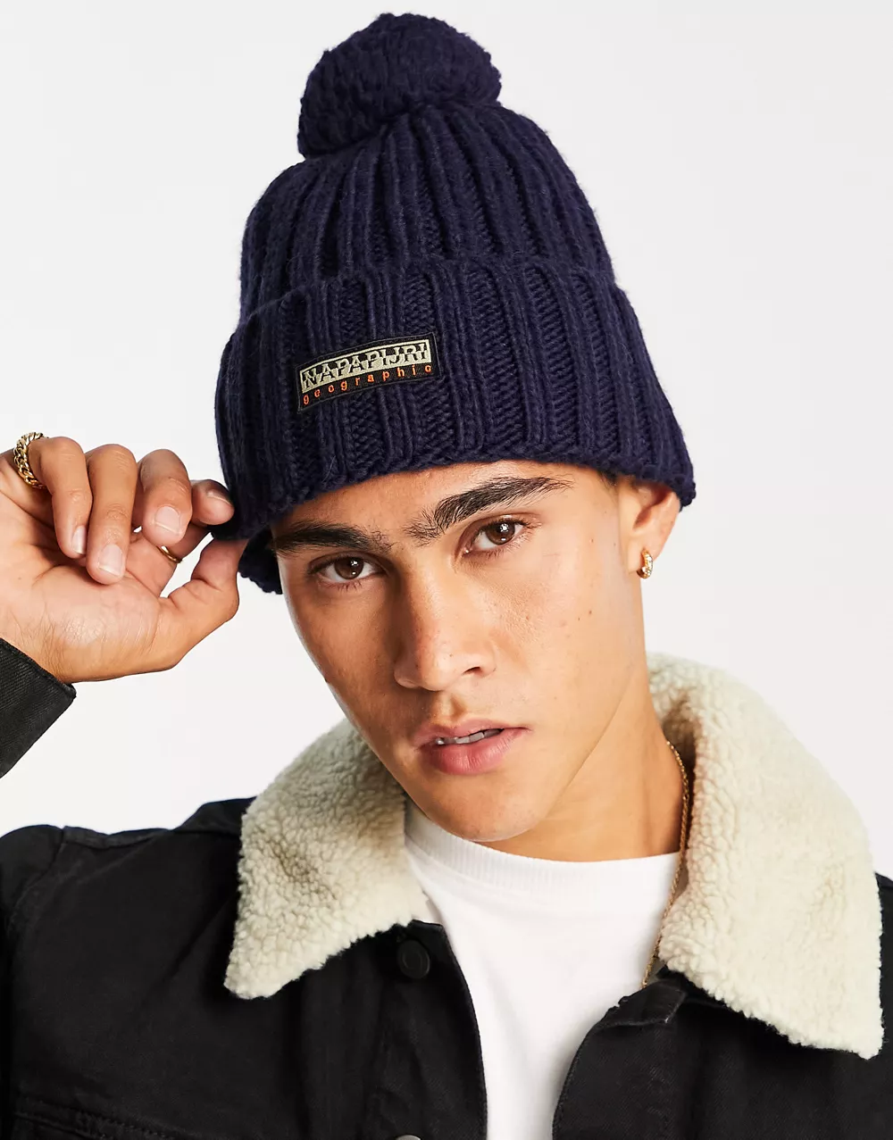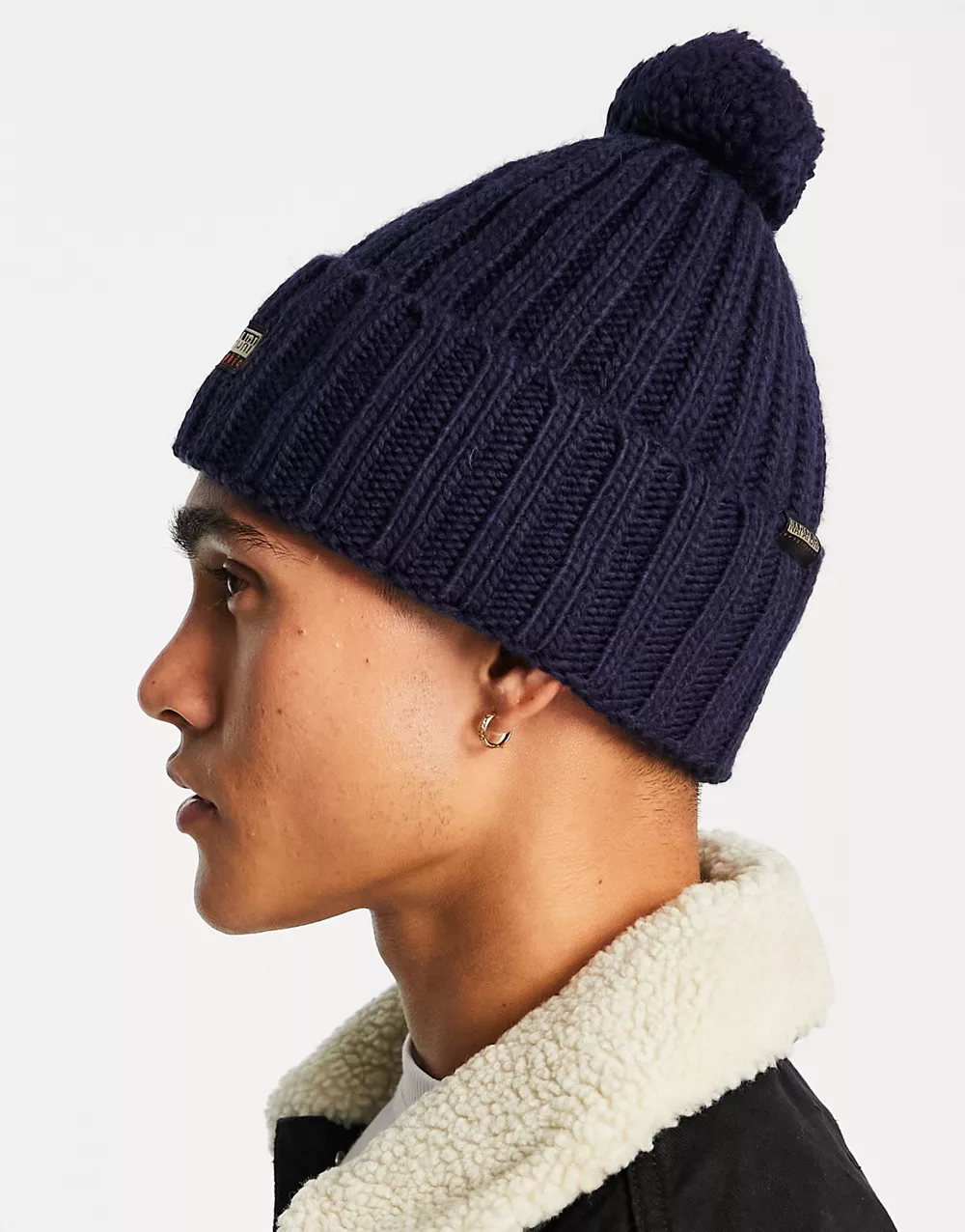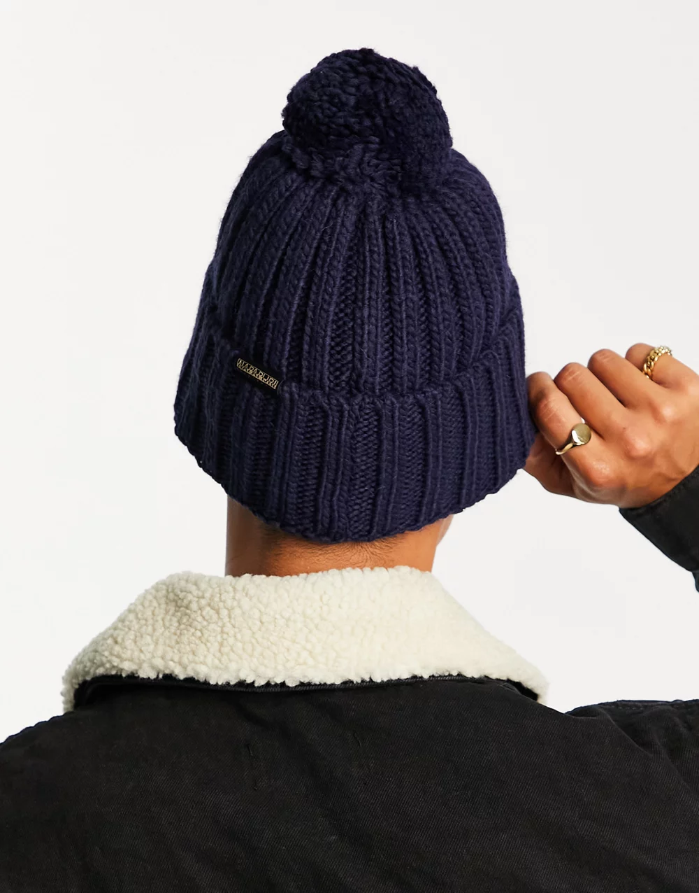 - Napapijri fea 2 bobble beanie with patch logo in navy