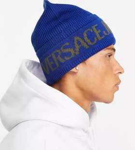 - Versace Jeans Couture logo beanie in blue
