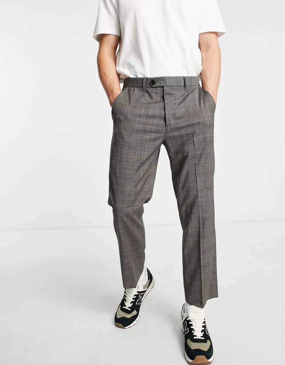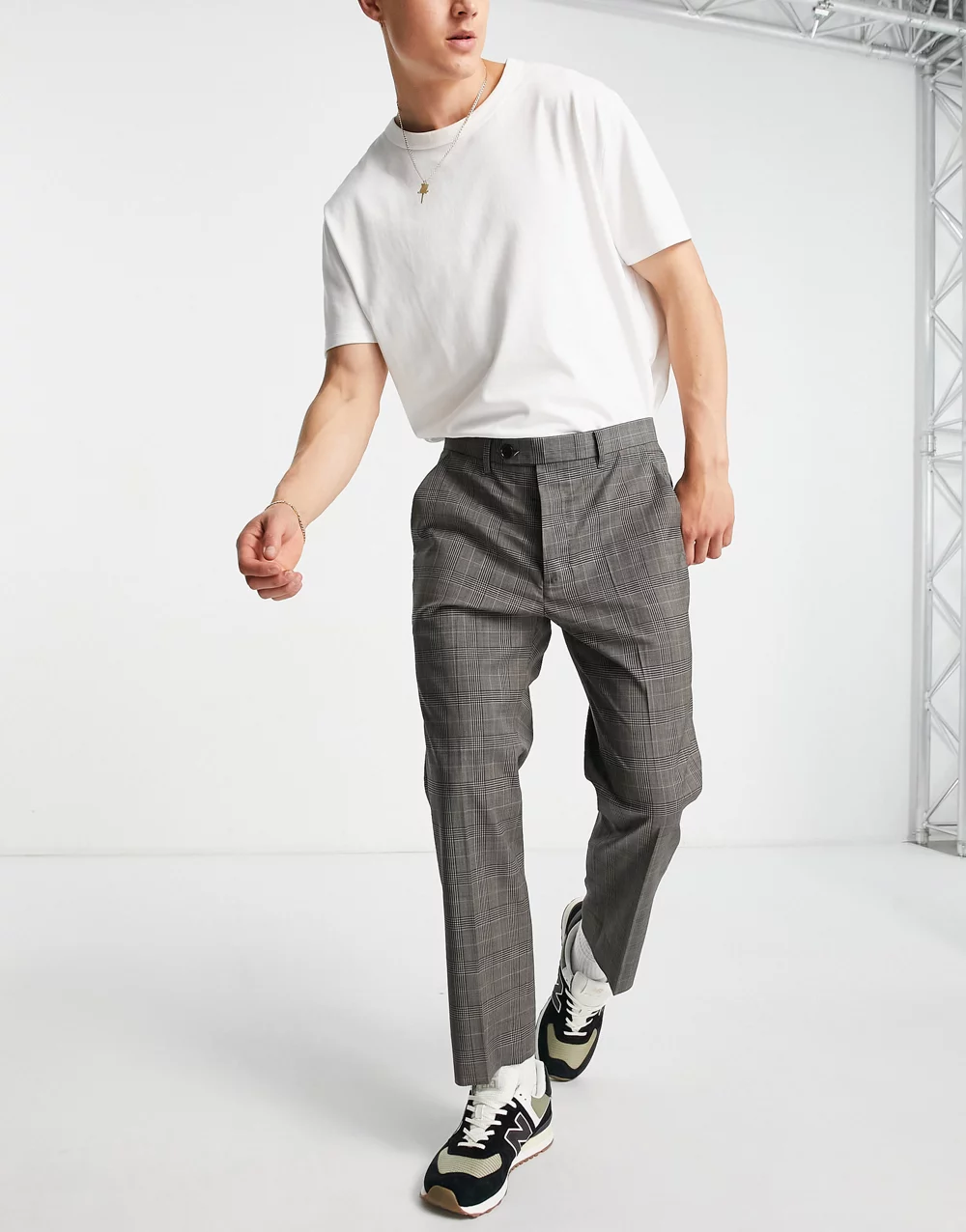 - AllSaints konan checked trouser in brown