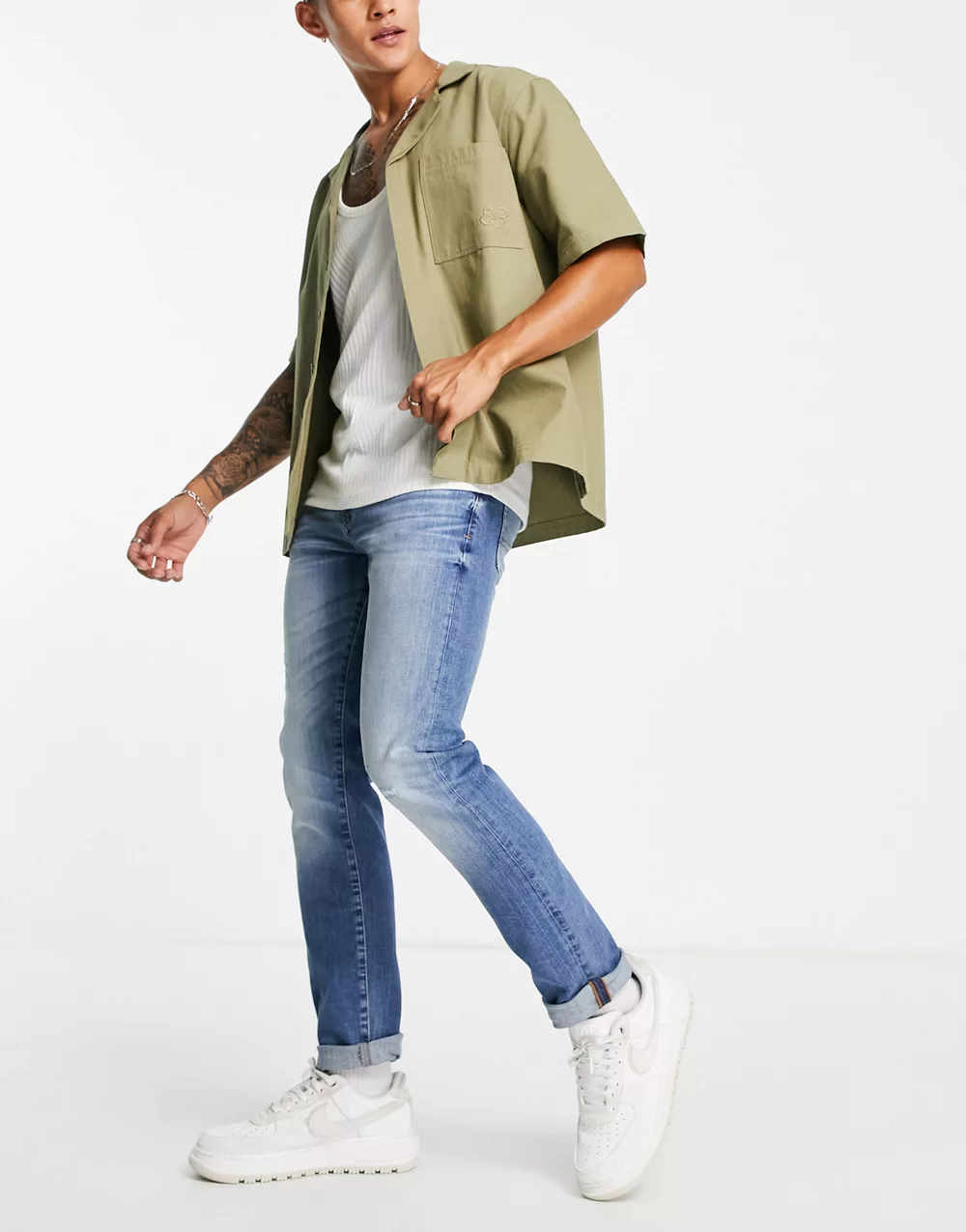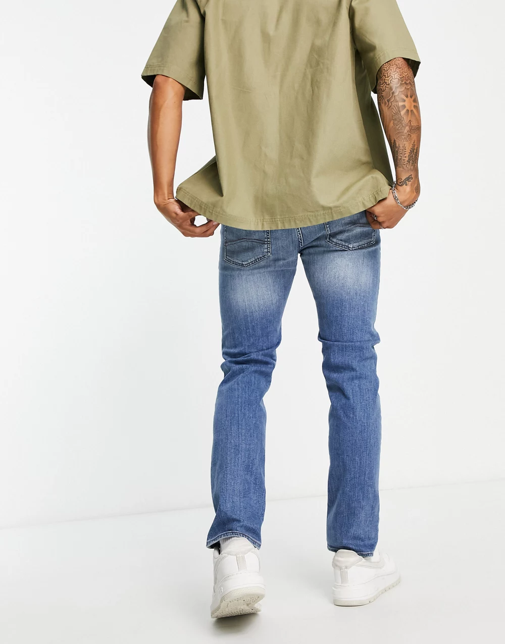 - Armani Exchange slim leg jeans in light wash blue