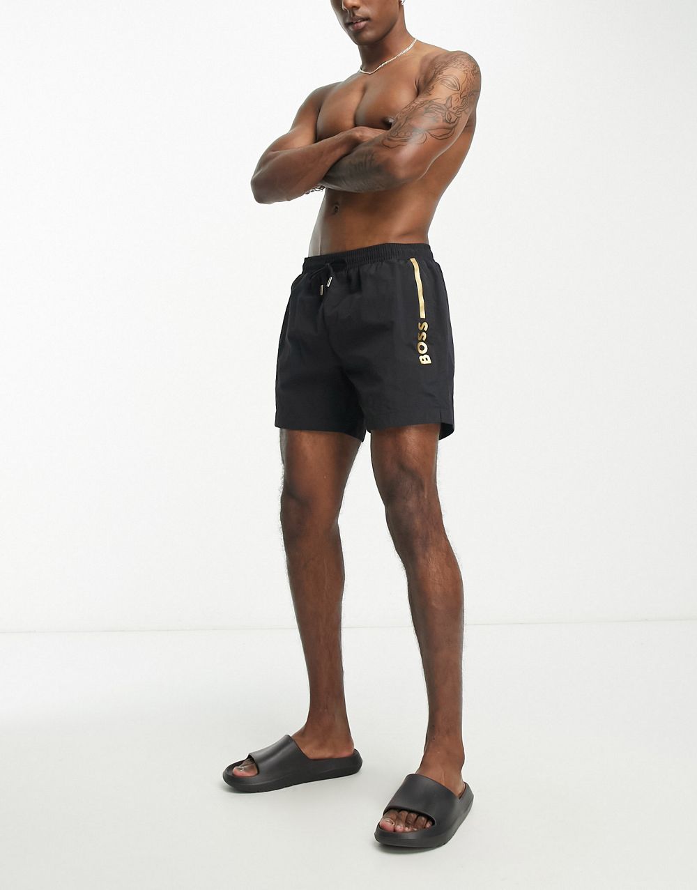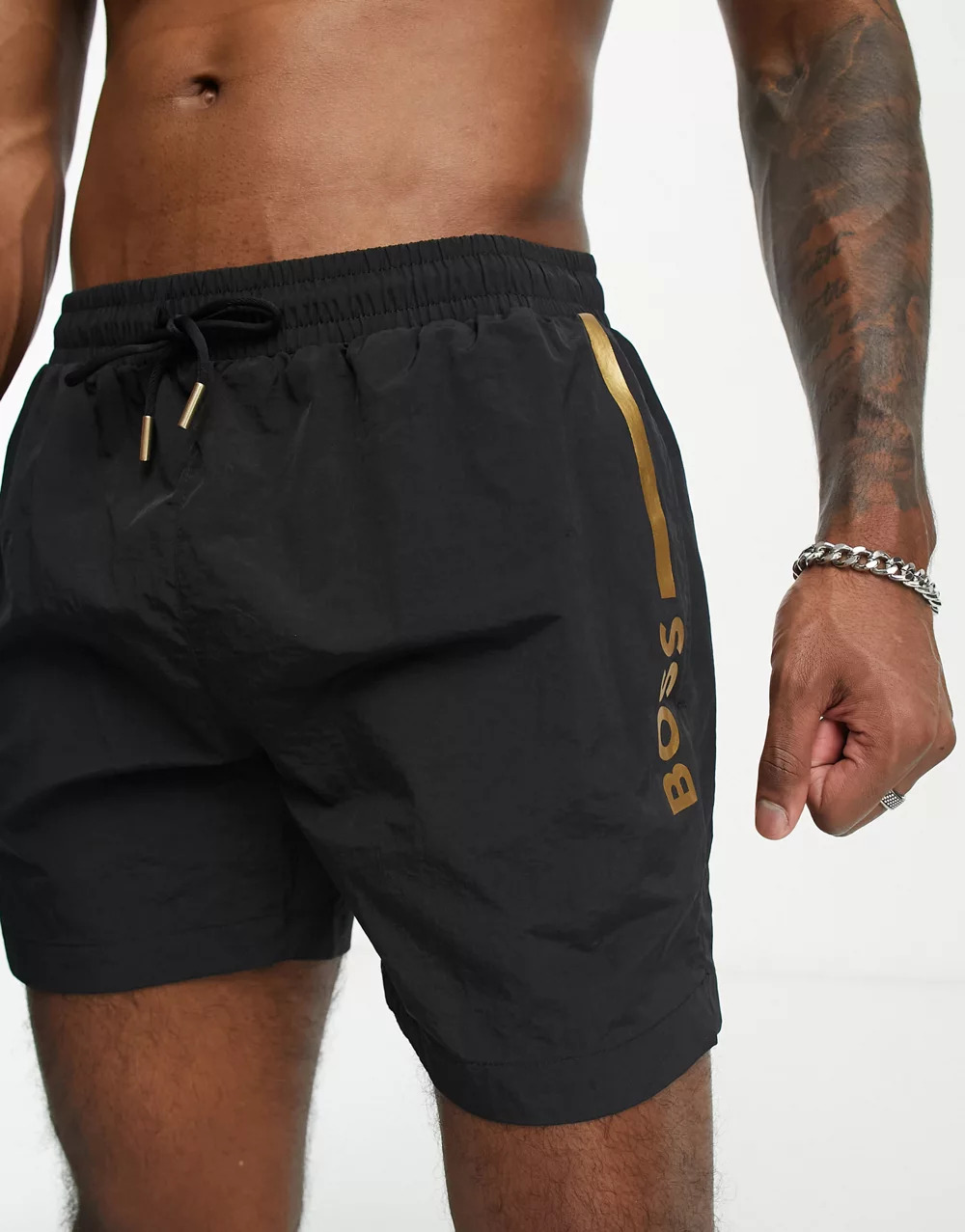 - BOSS Bodywear Ole gold logo swimshorts in black