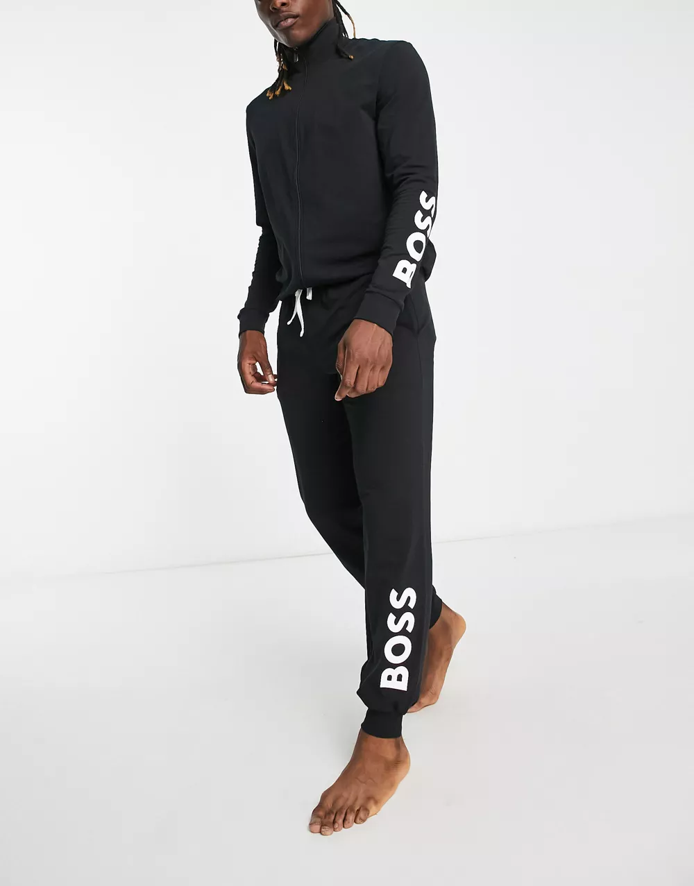 - BOSS Bodywear vertical logo zip through sweatshirt and joggers set in black