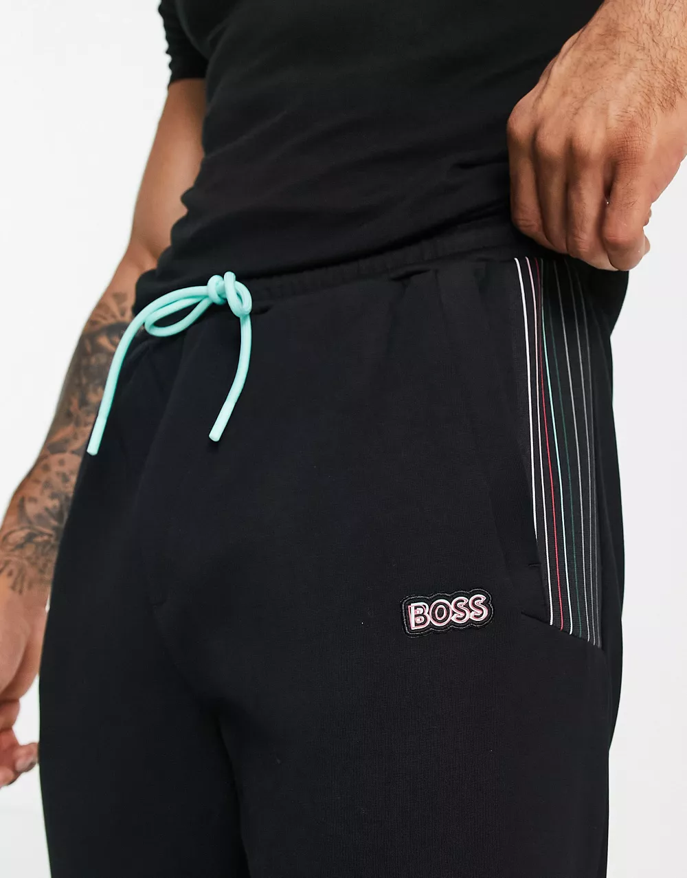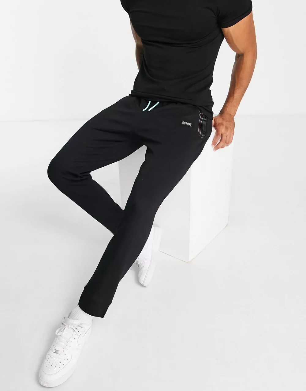 Tommy Jeans serif logo colourblock cuffed joggers in black
