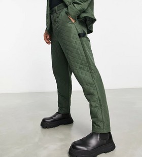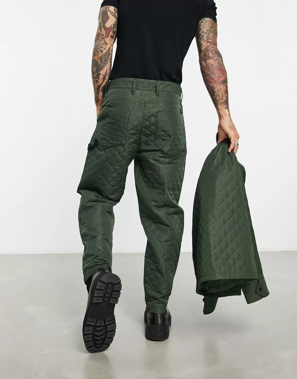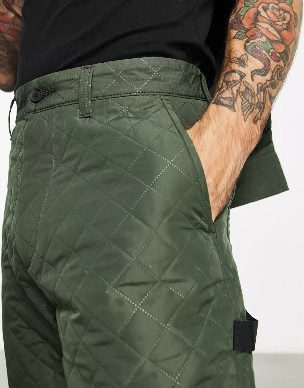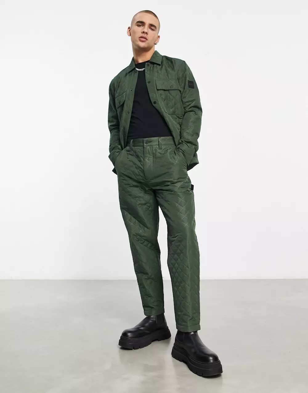 - BOSS Orange Statum quilted tapered fit trousers in khaki