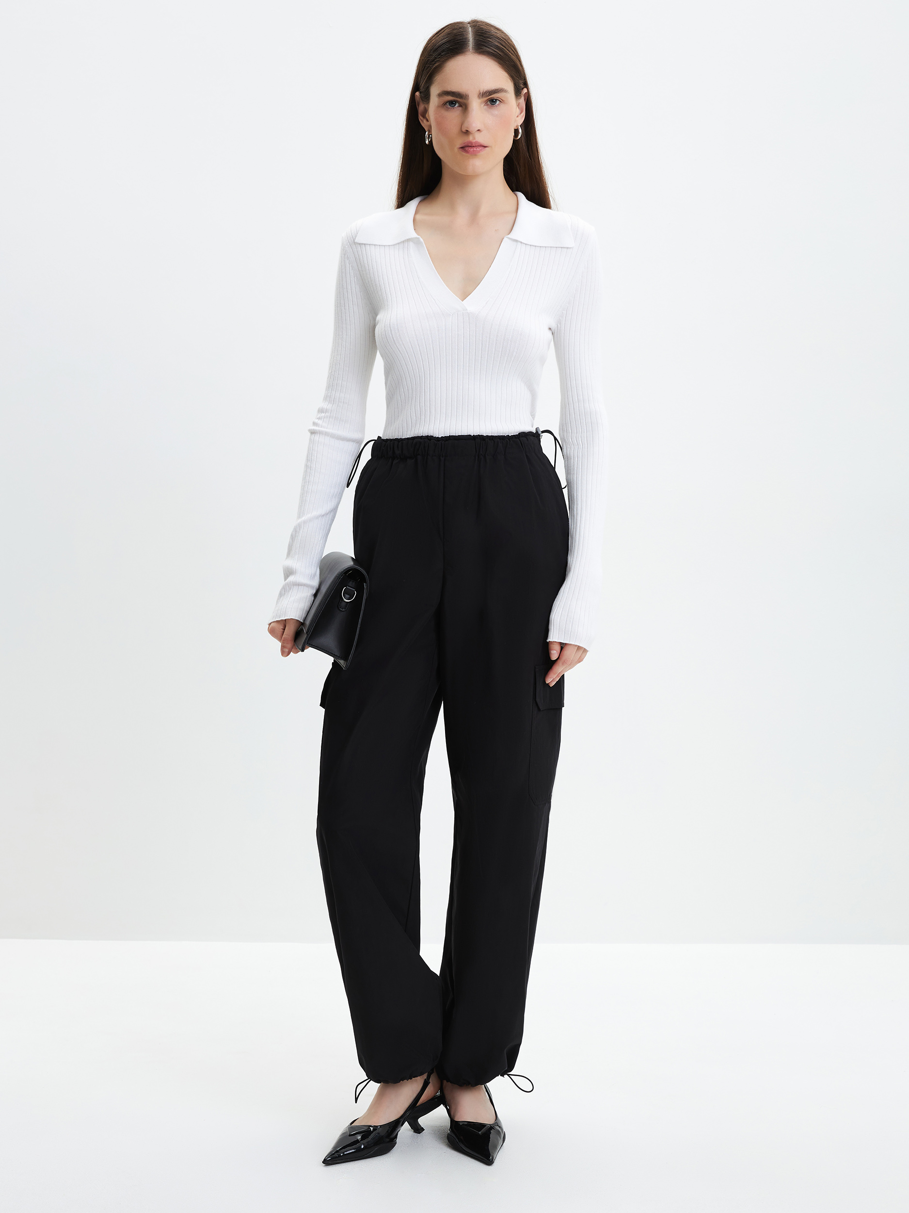 Параметры: Тип карманов: с отрезным бочком; накладные; Модель брюк: широкие; Тип посадки: средняя