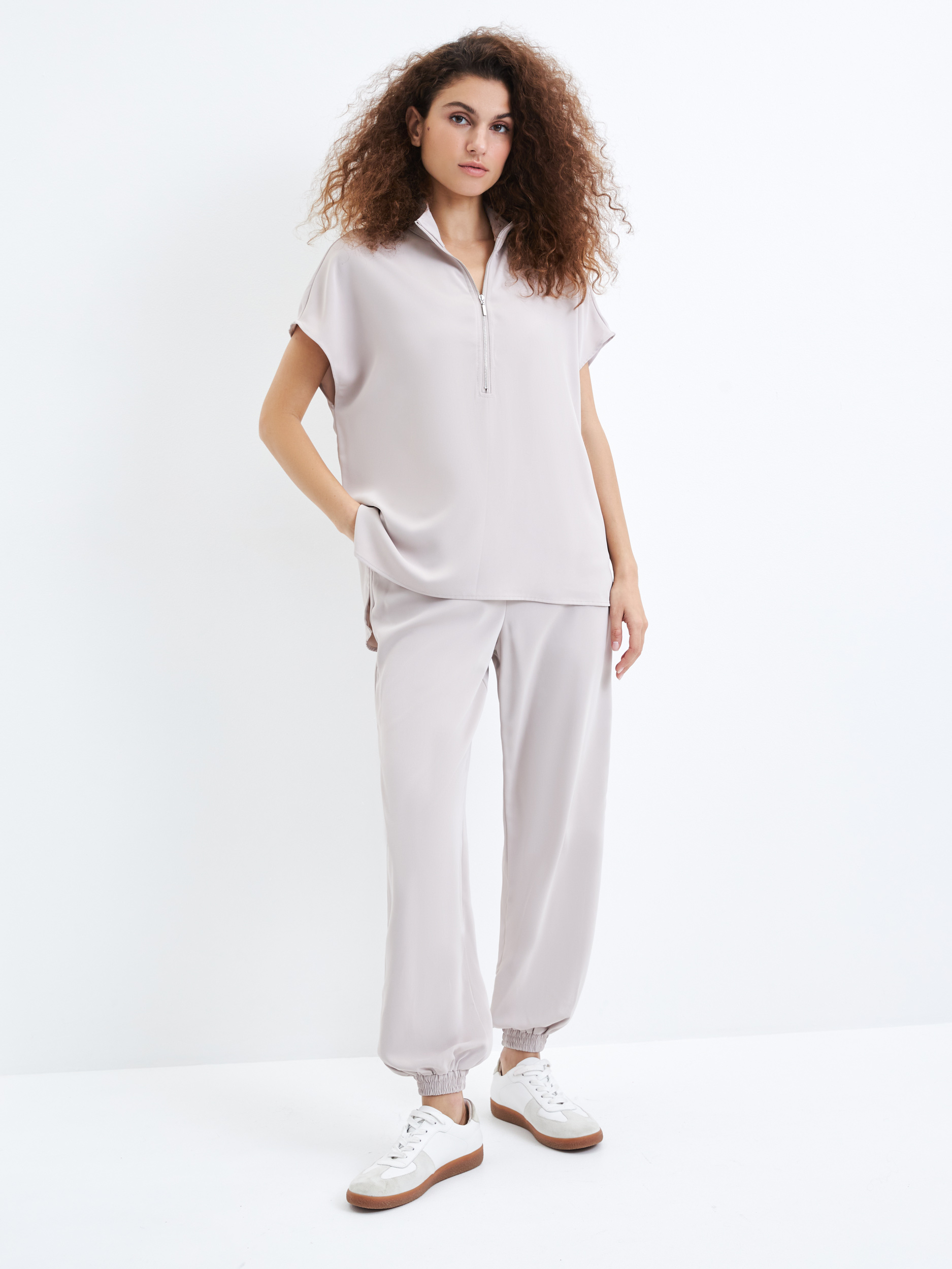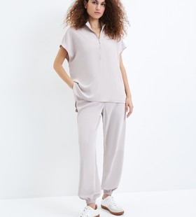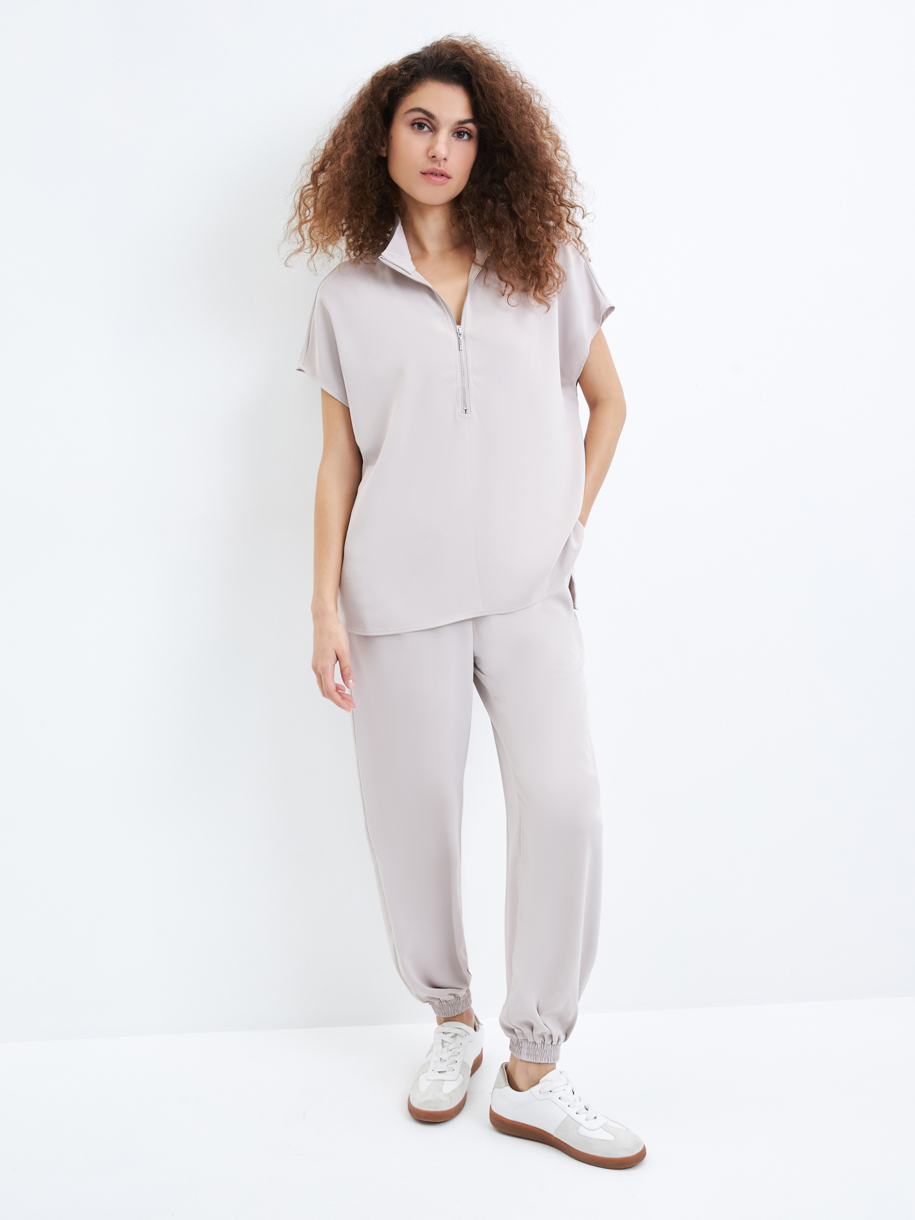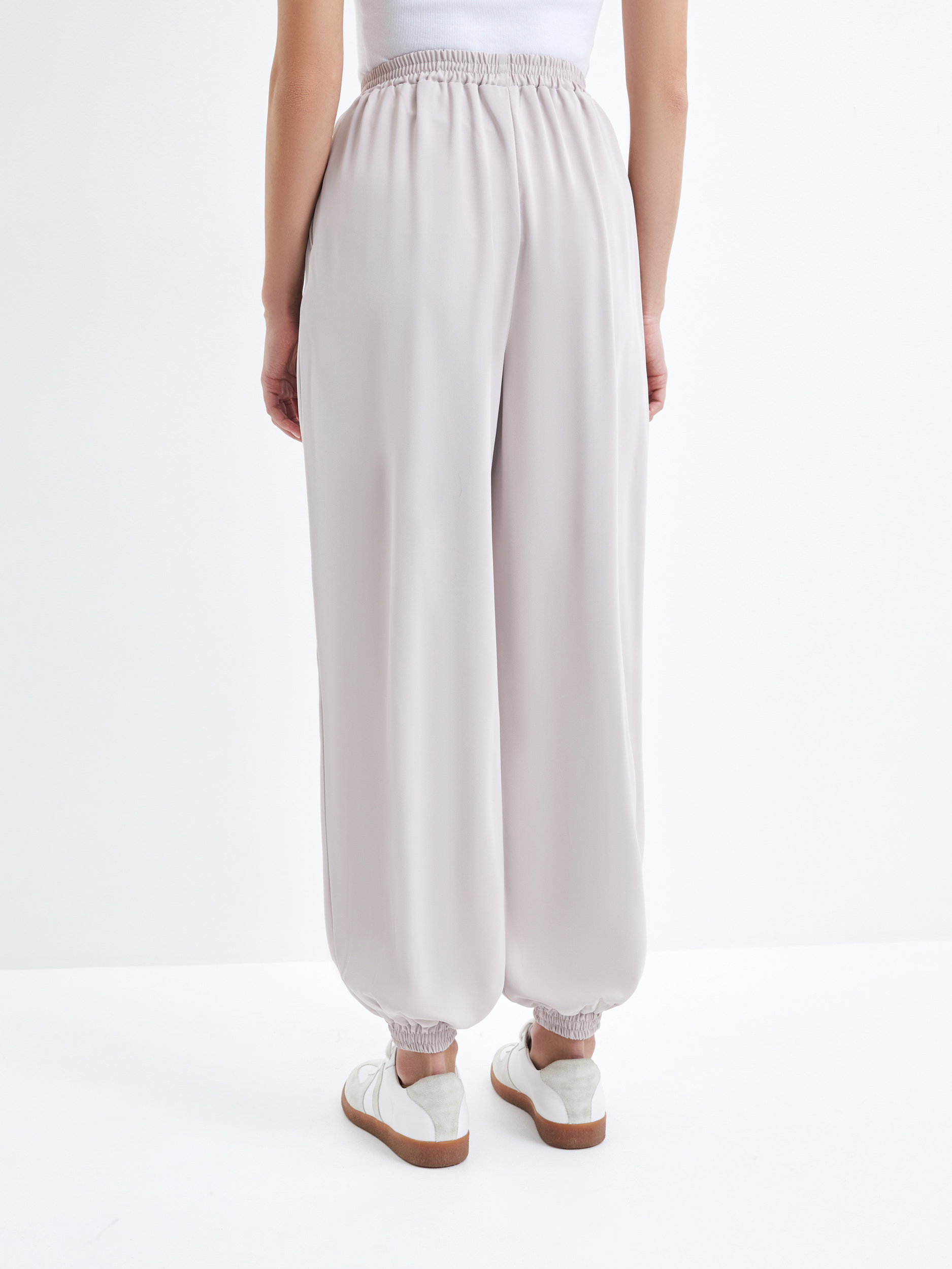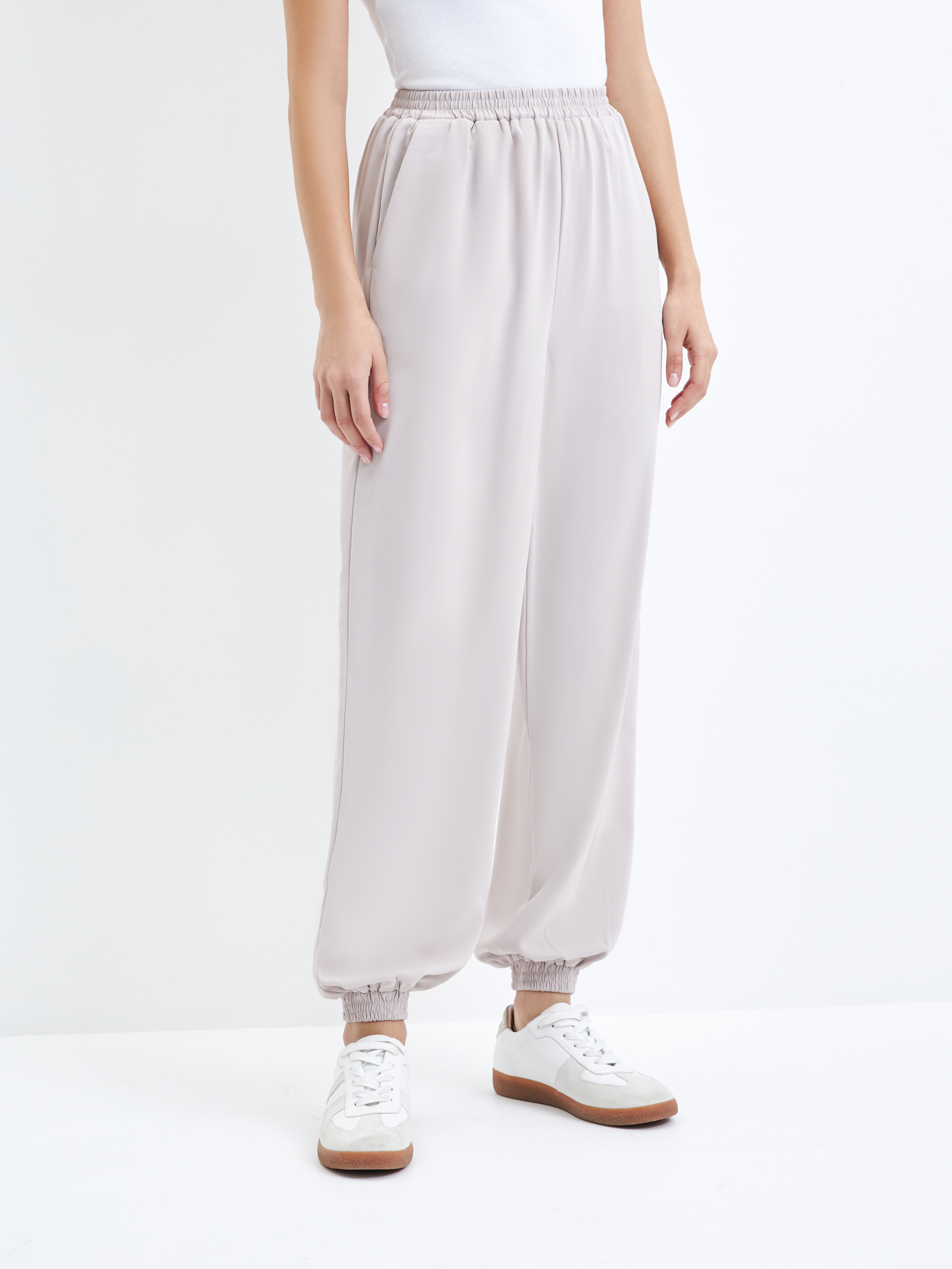 Параметры: Застежка: резинка; Модель брюк: зауженные; Тип карманов: 2 боковых кармана; Тип посадки: высокая