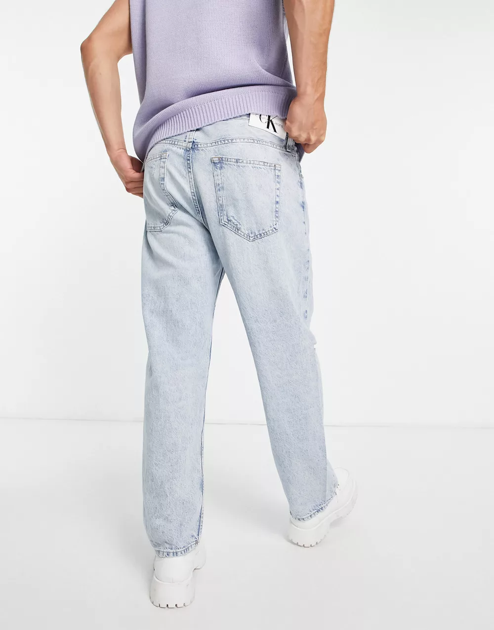 - Calvin Klein Jeans 90s straight crop jeans with distressed detail in light wash