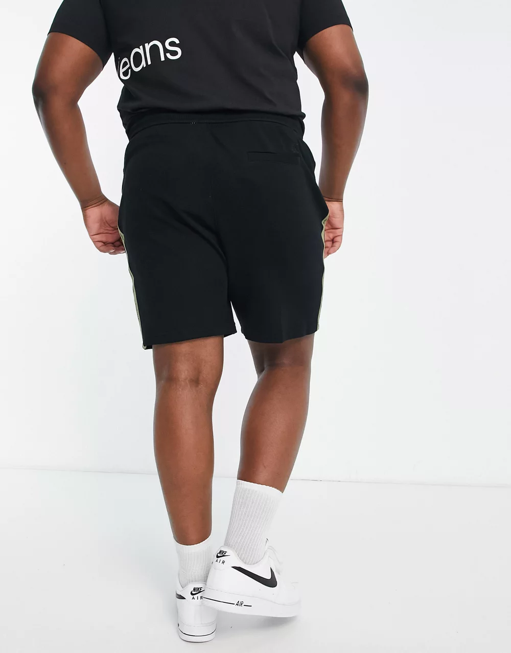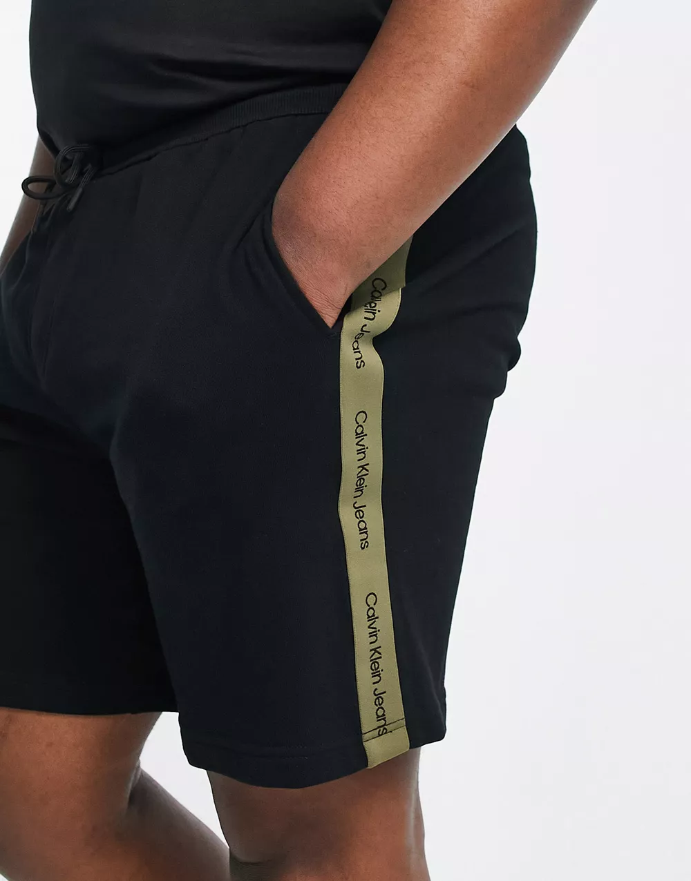 - Calvin Klein Jeans Big & Tall contrast tape sweat shorts in black