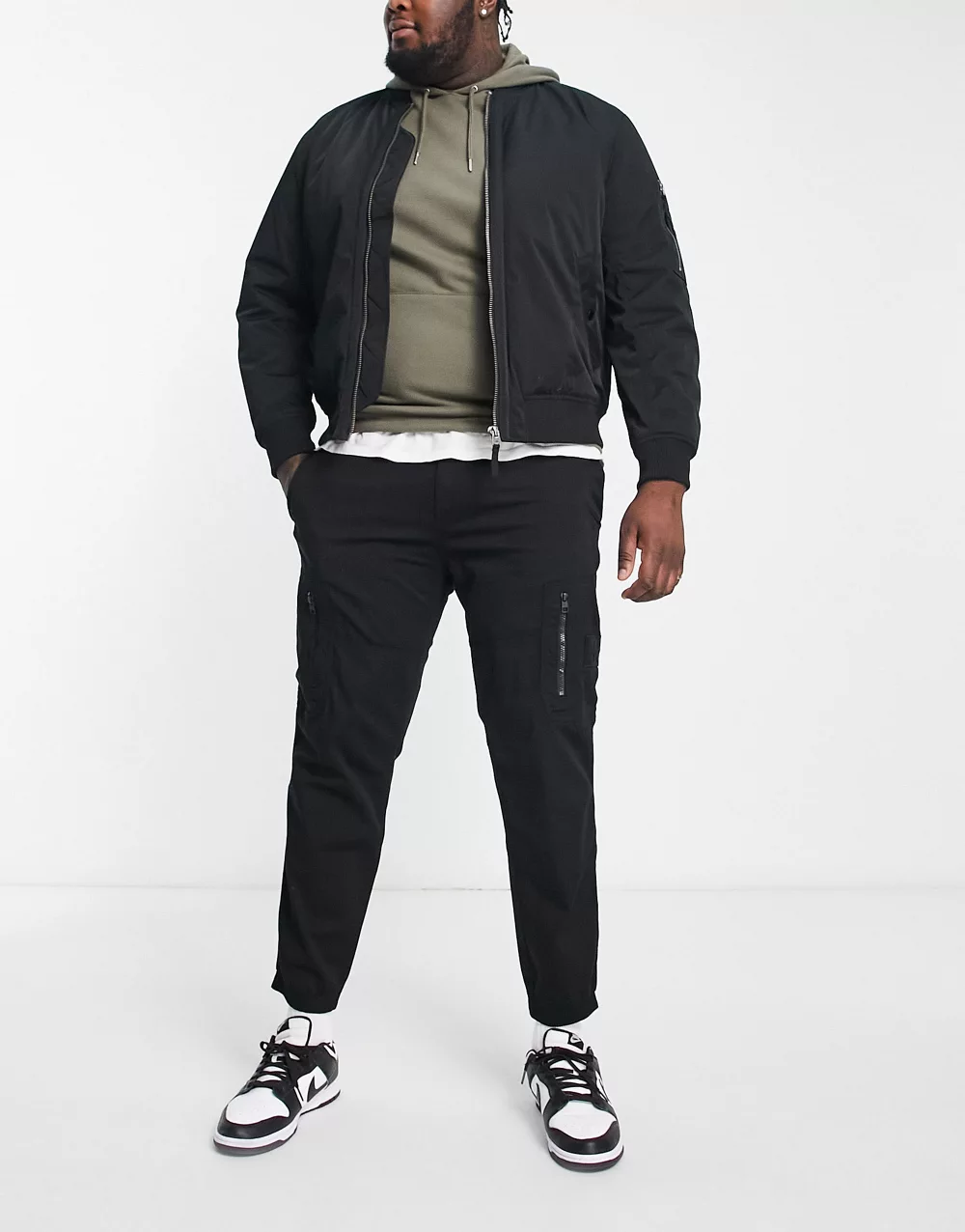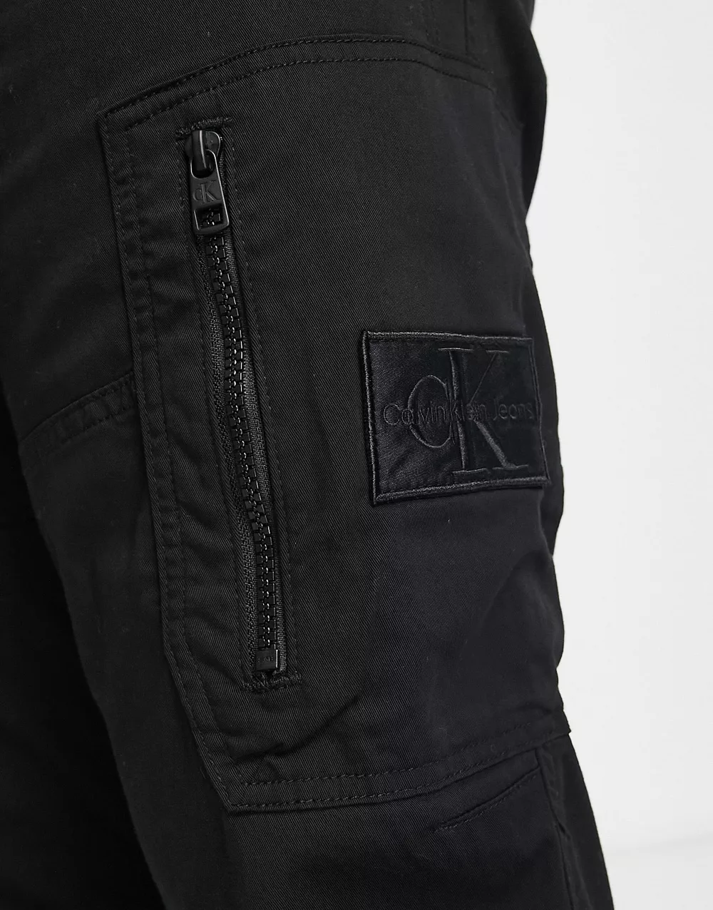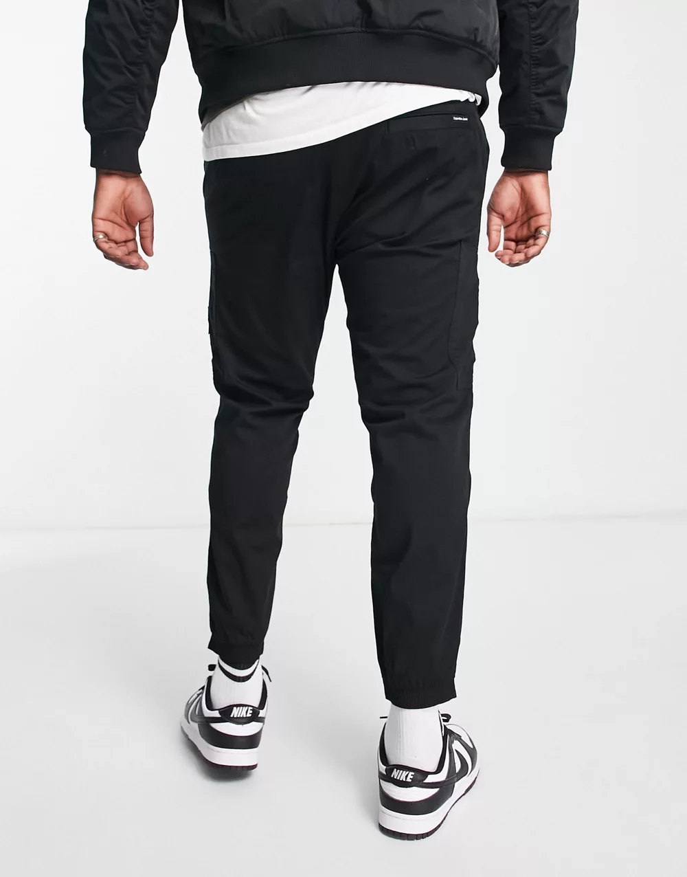 - Calvin Klein Jeans Big & Tall skinny washed cargo trousers in black