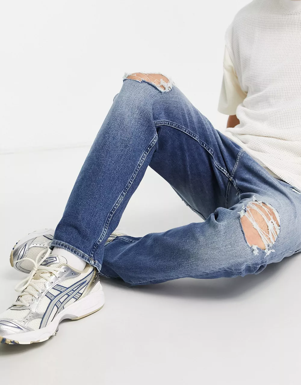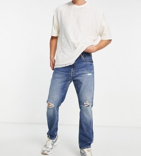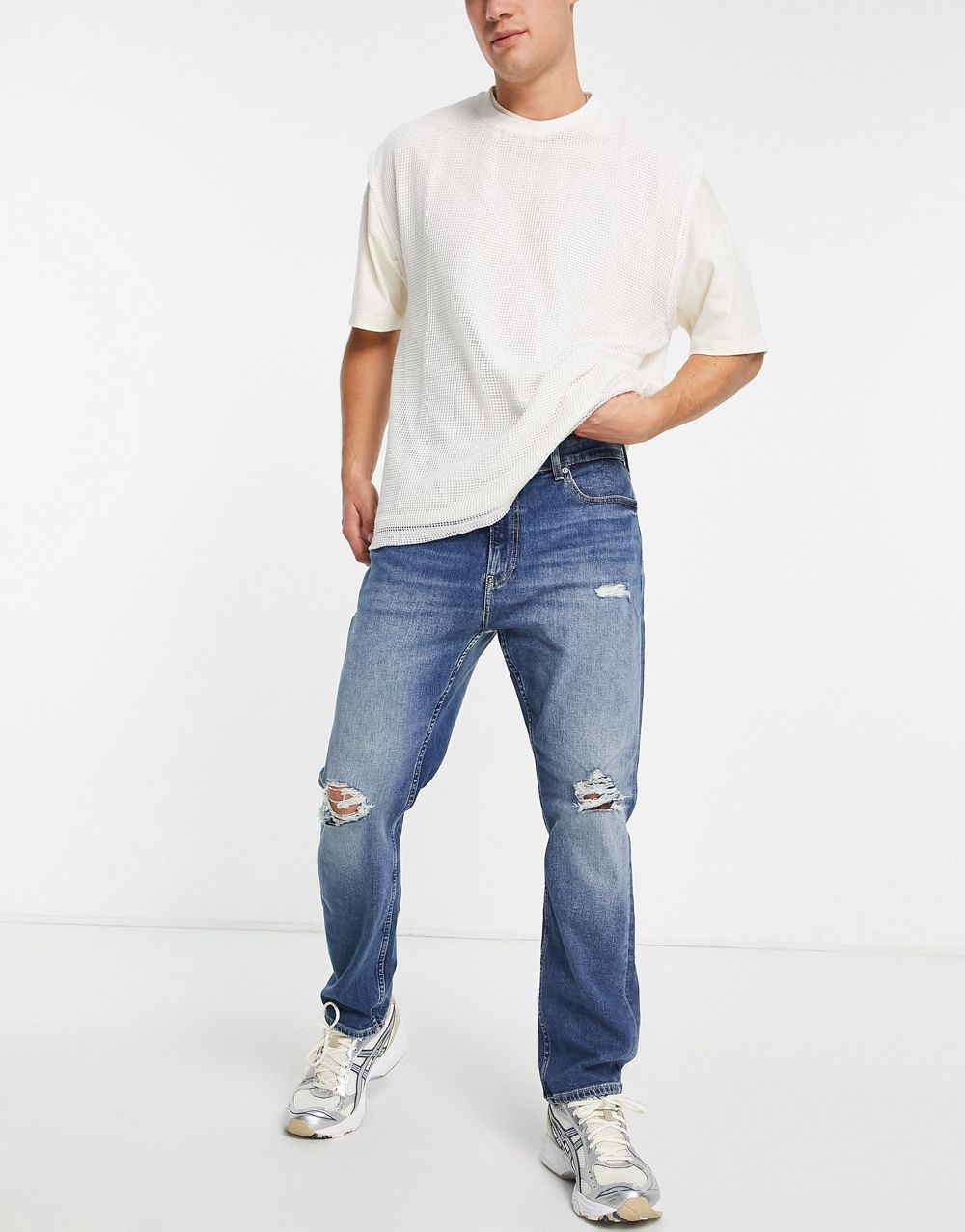 - Calvin Klein Jeans dad fit distressed jeans in mid wash