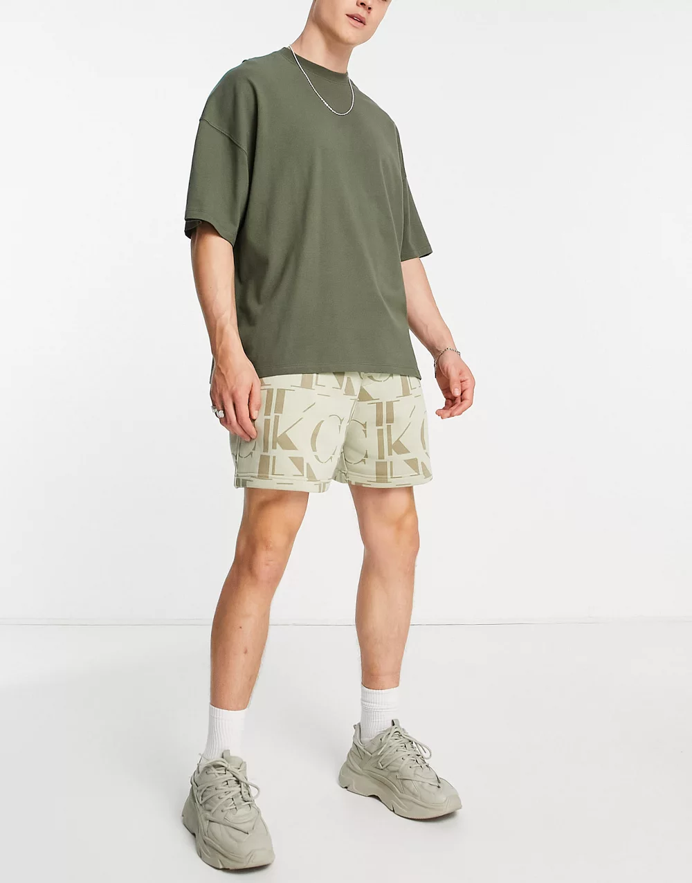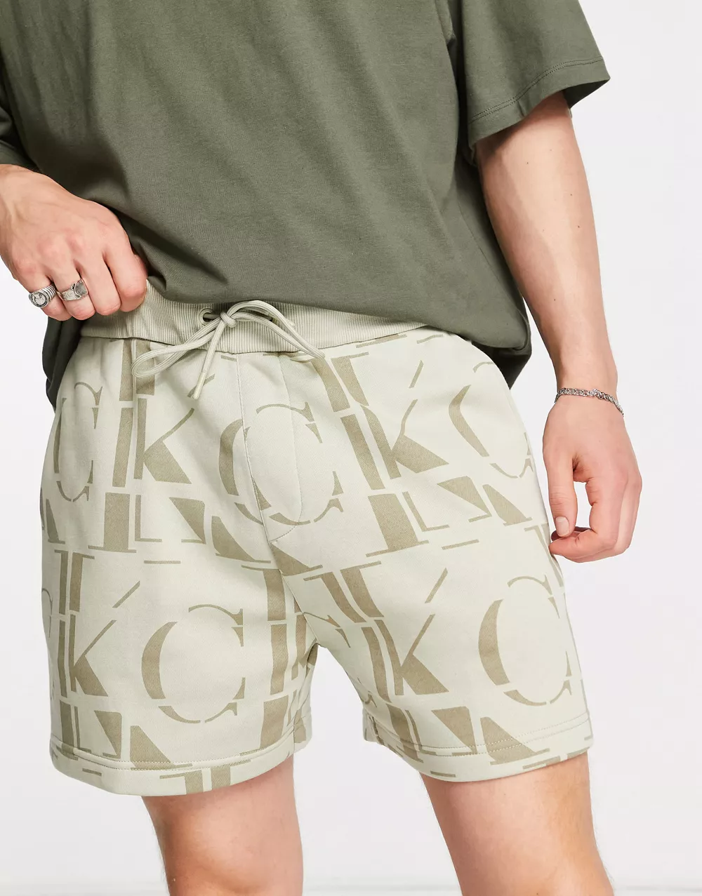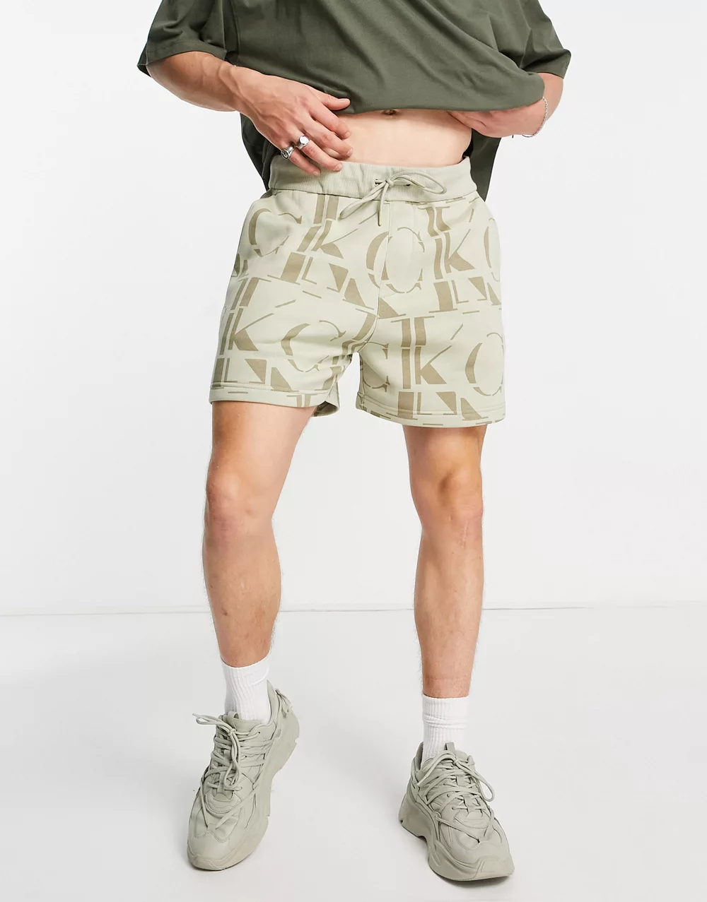 - Calvin Klein Jeans printed co-ord sweat shorts in beige