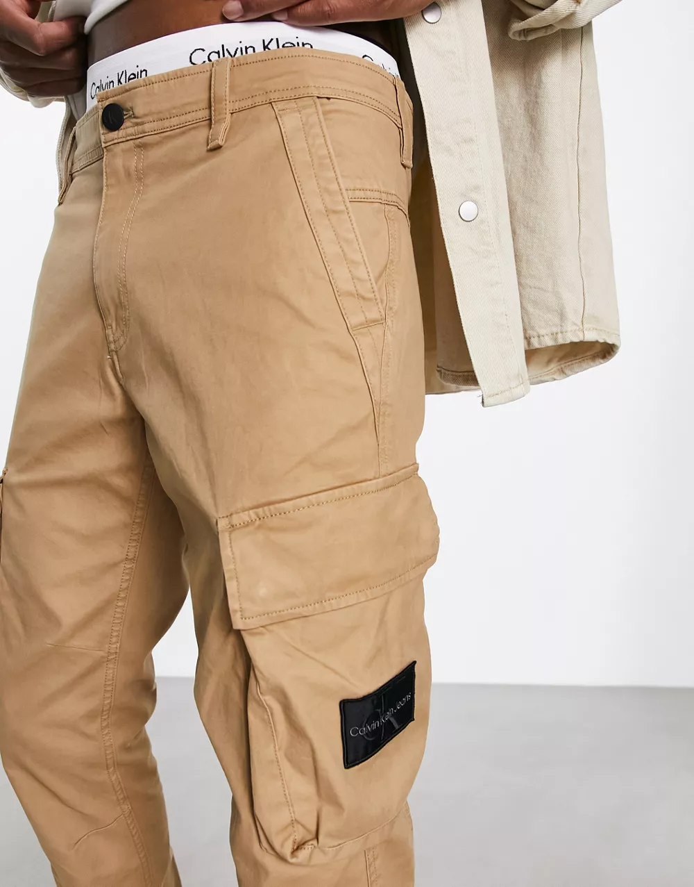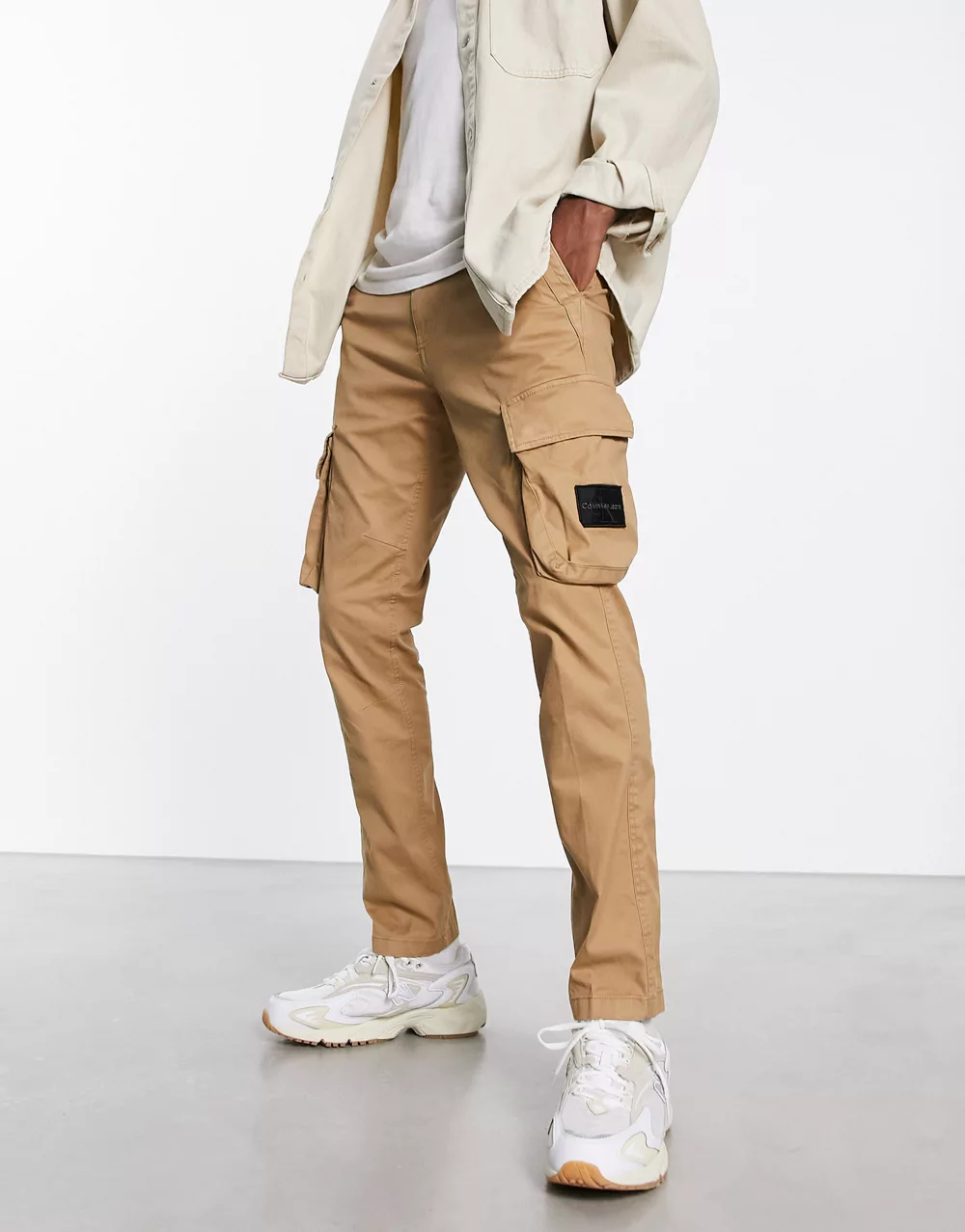 - Calvin Klein Jeans skinny fit cargo trousers in camel