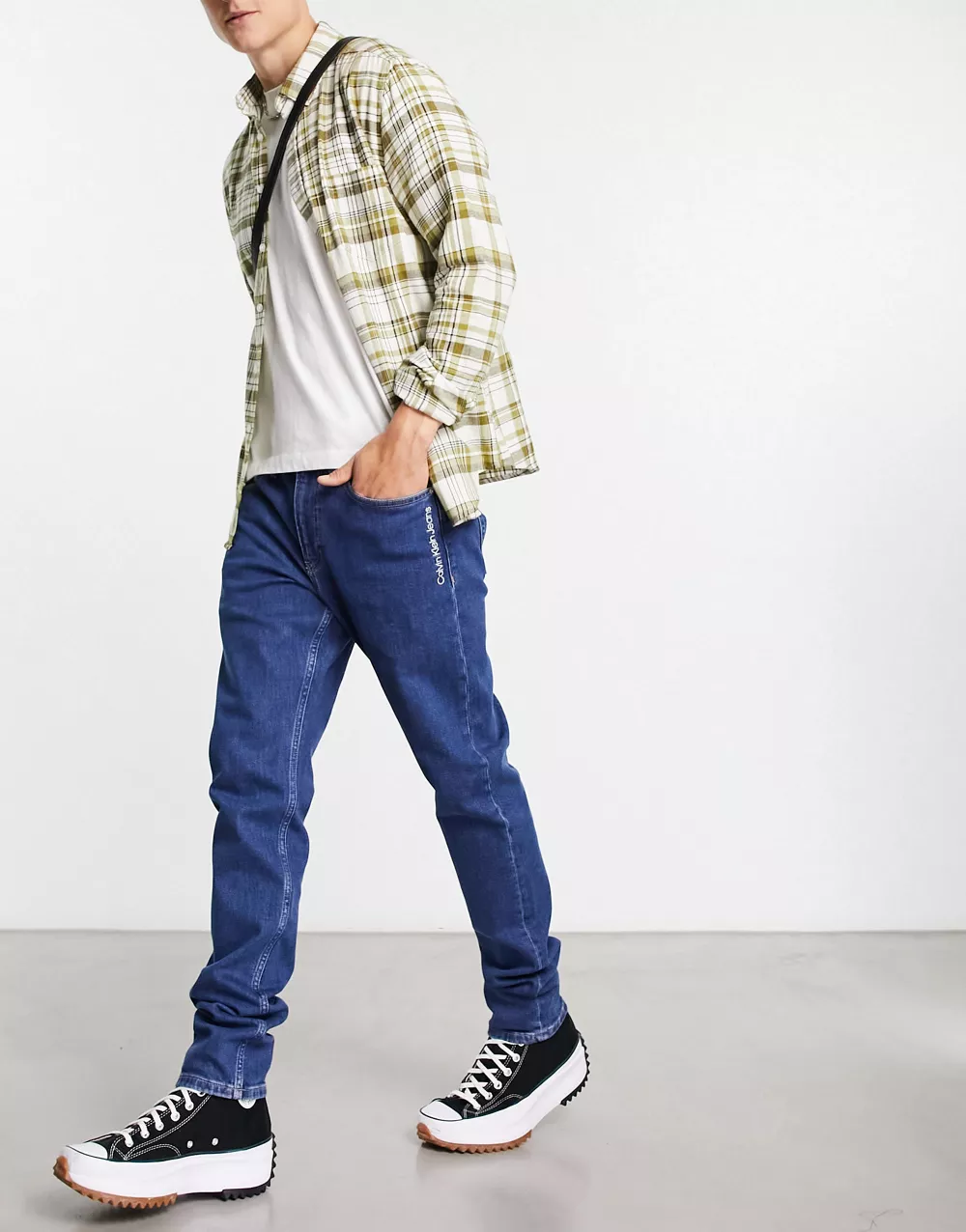 - Calvin Klein Jeans slim tapered fit jeans in mid wash
