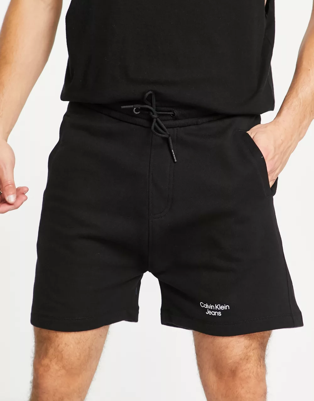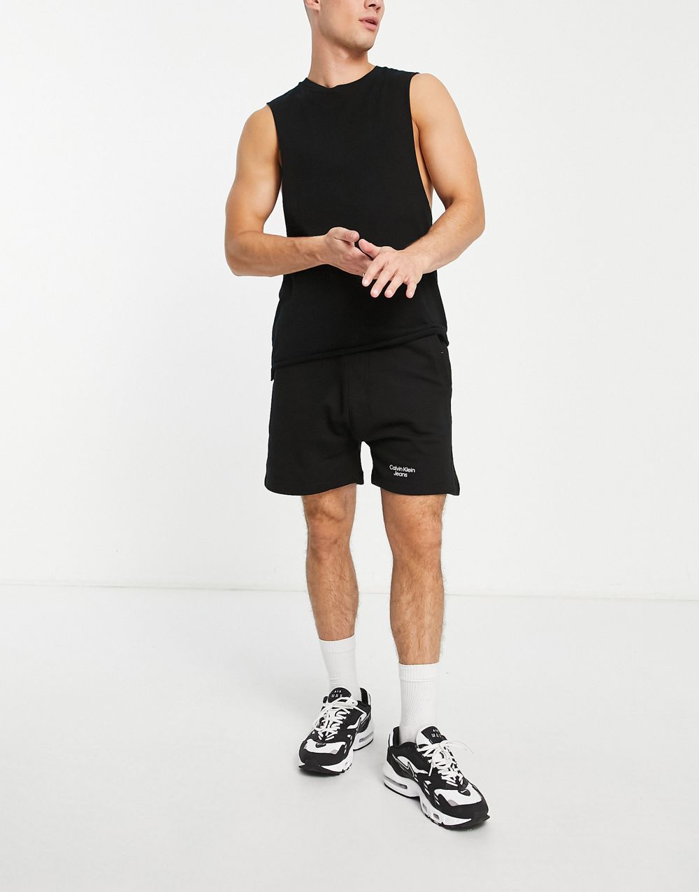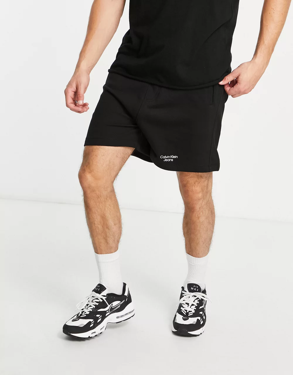 - Calvin Klein Jeans stacked logo sweat shorts in black