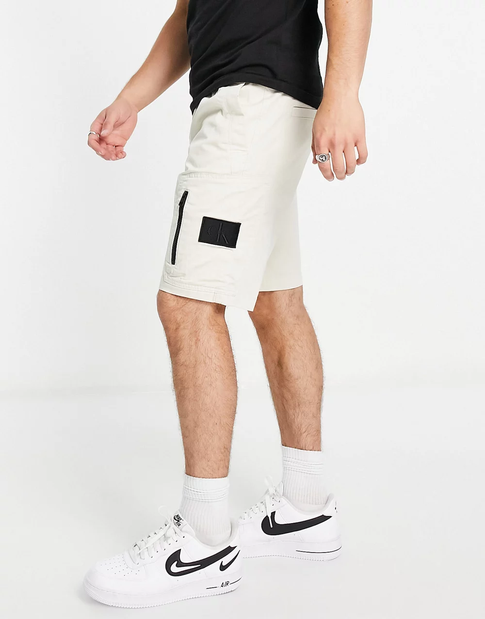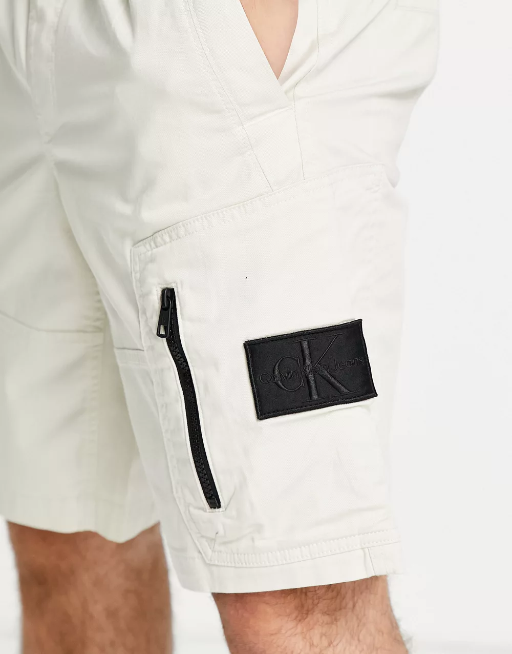 - Calvin Klein Jeans washed cargo shorts with zip detail in stone
