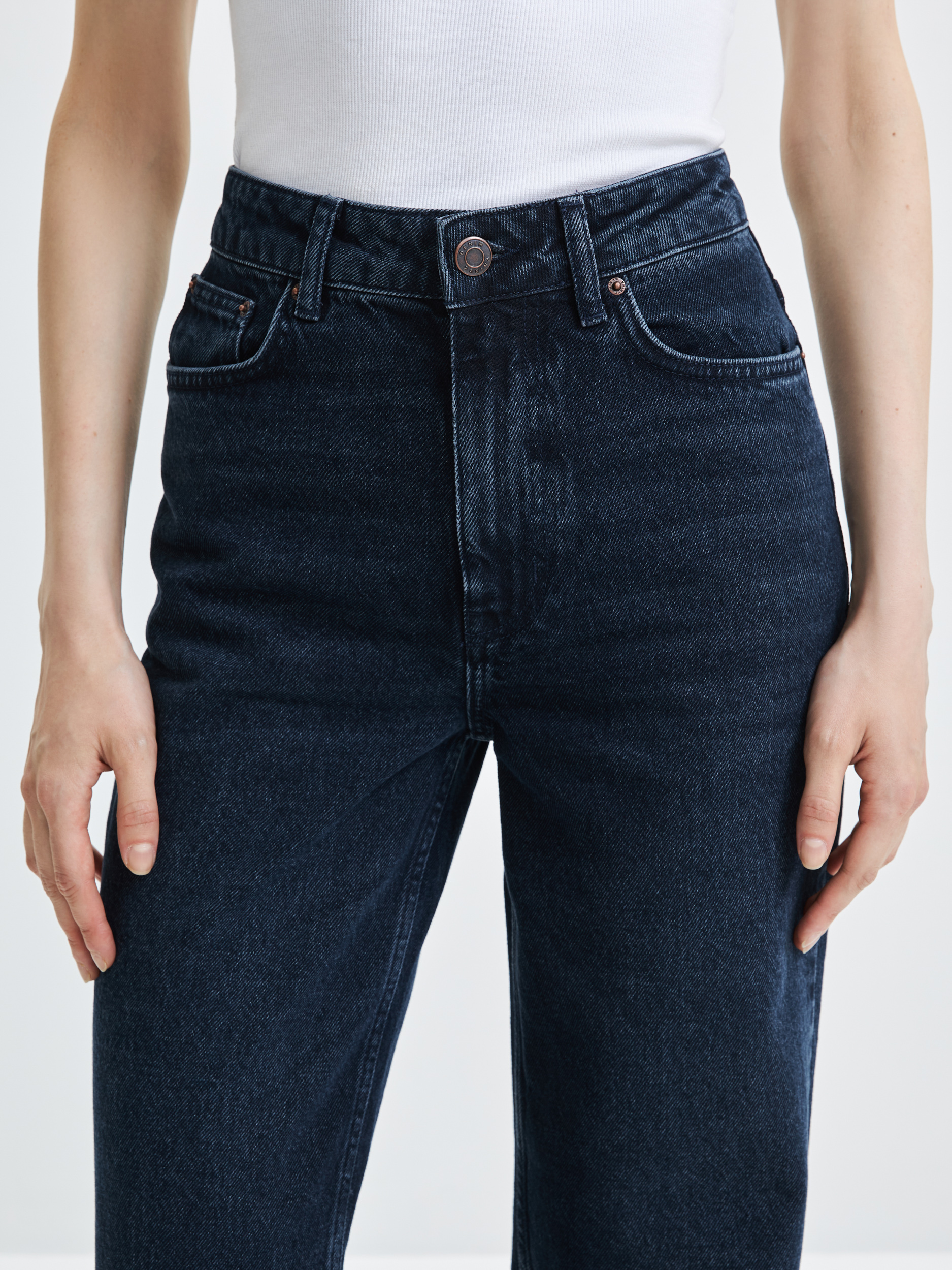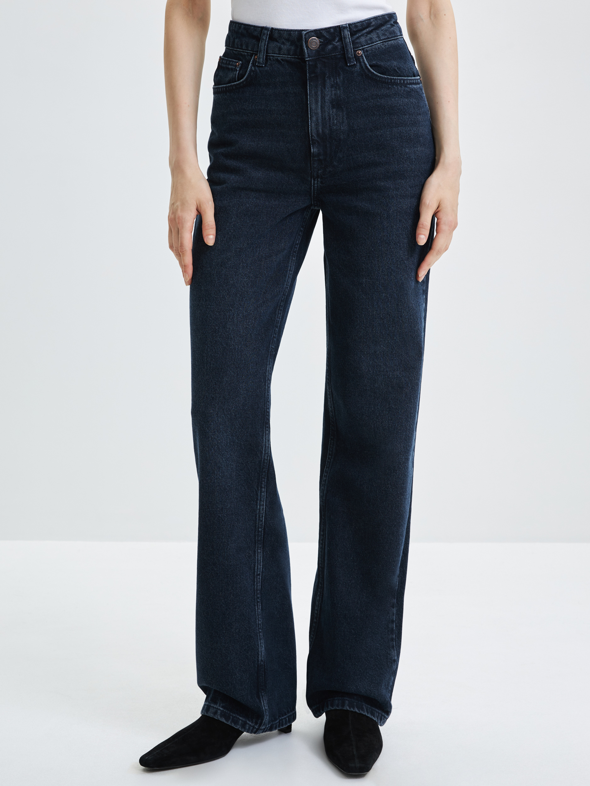 Параметры: Материал (деним): без эластана; Модель джинс на английском: straight; Модель джинс: прямые; Тип посадки: высокая