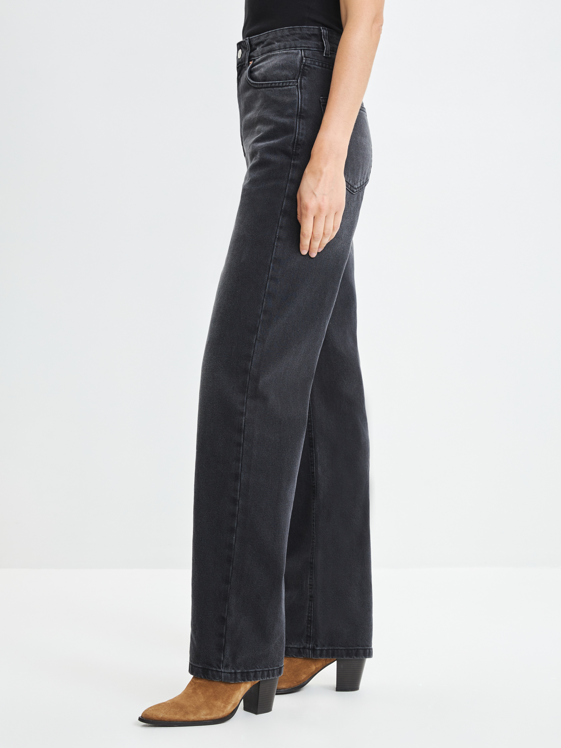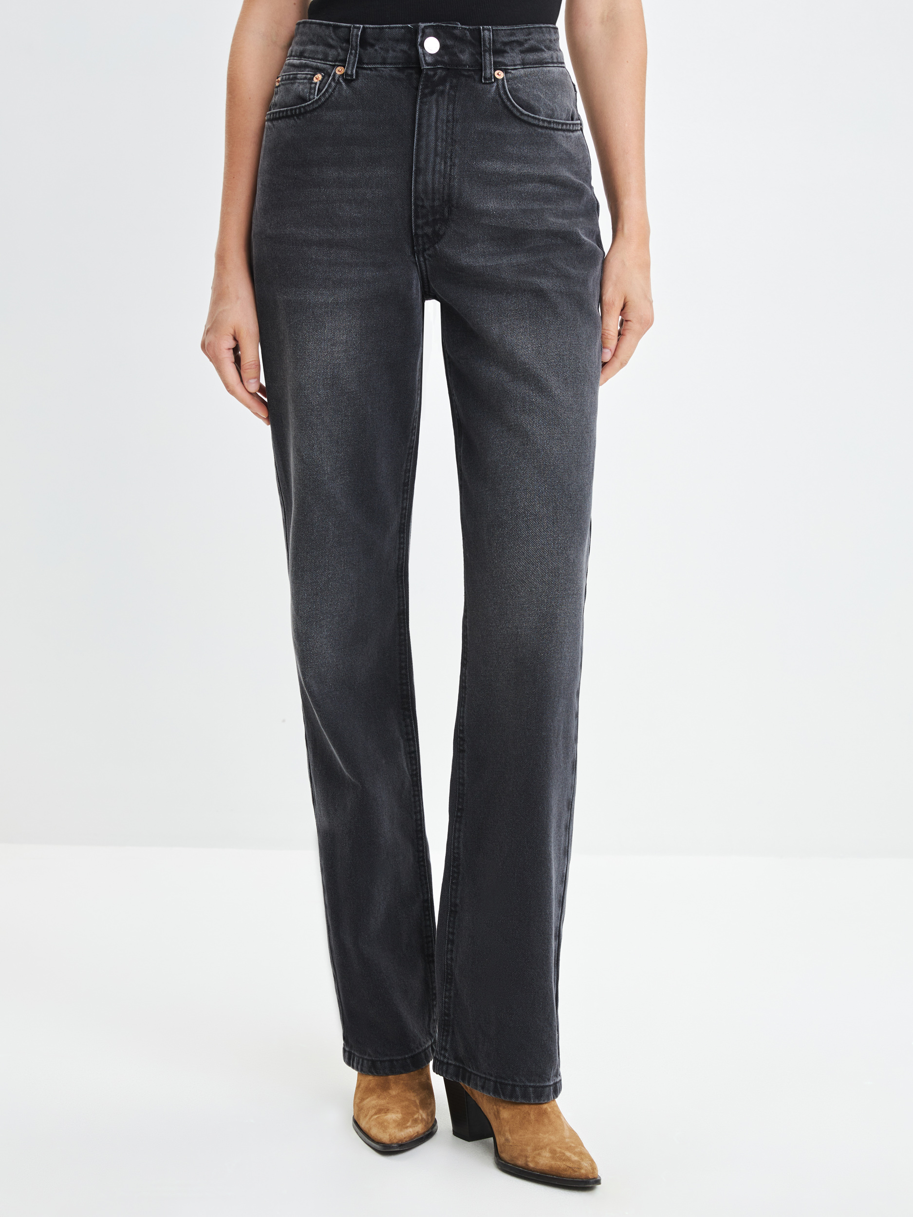 Параметры: Материал (деним): без эластана; Модель джинс на английском: straight; Тип посадки: высокая; Модель джинс: прямые
