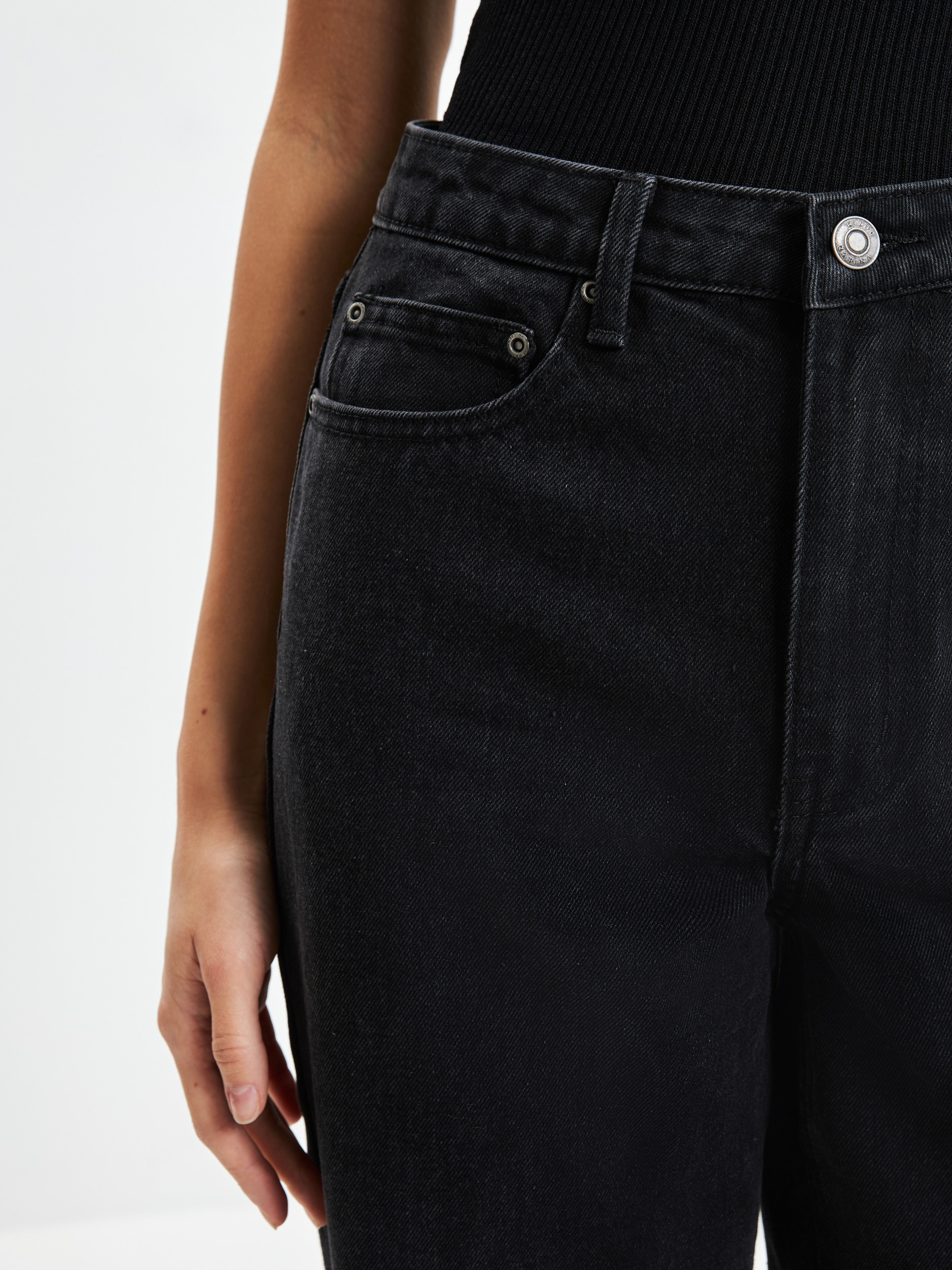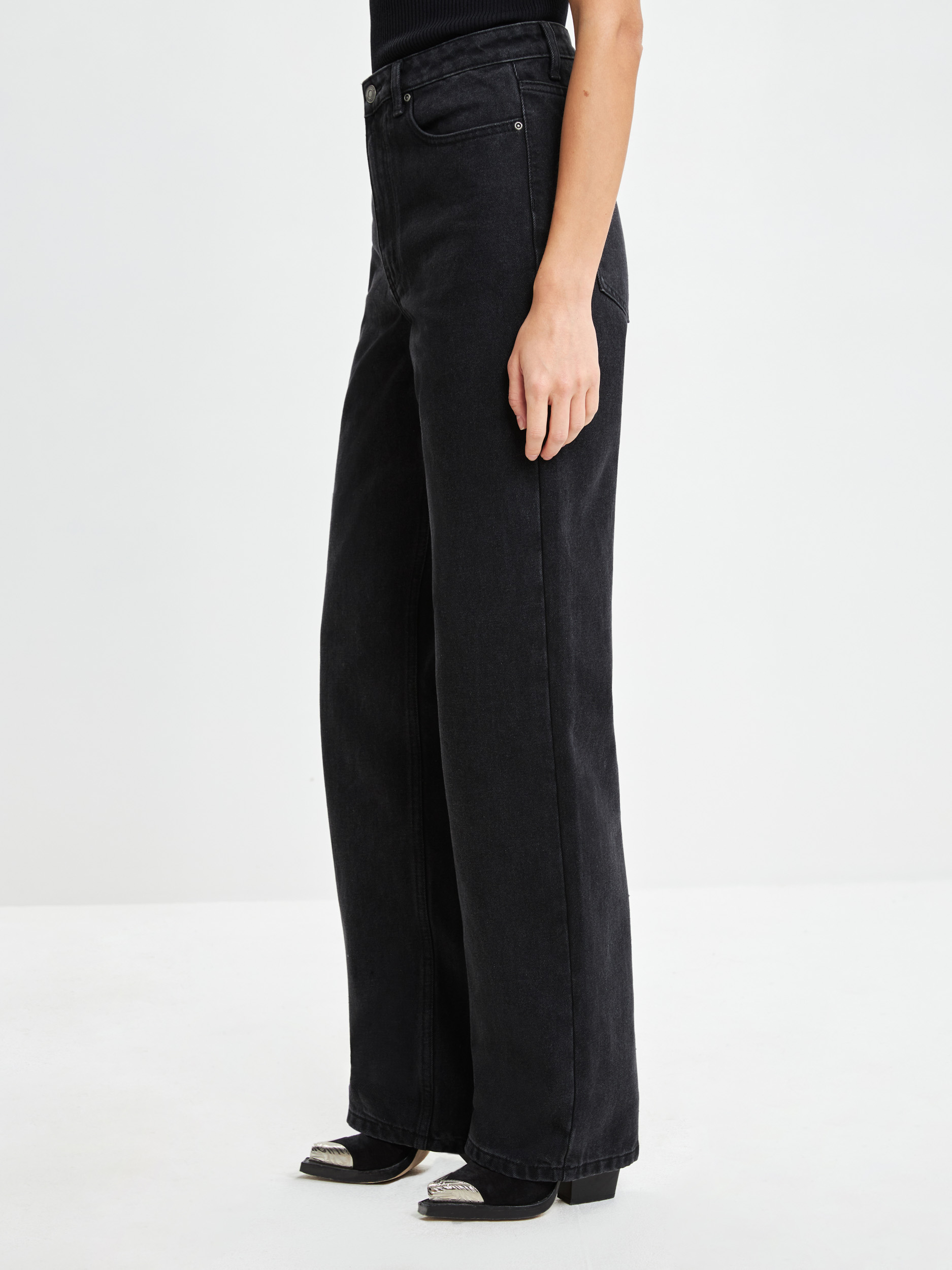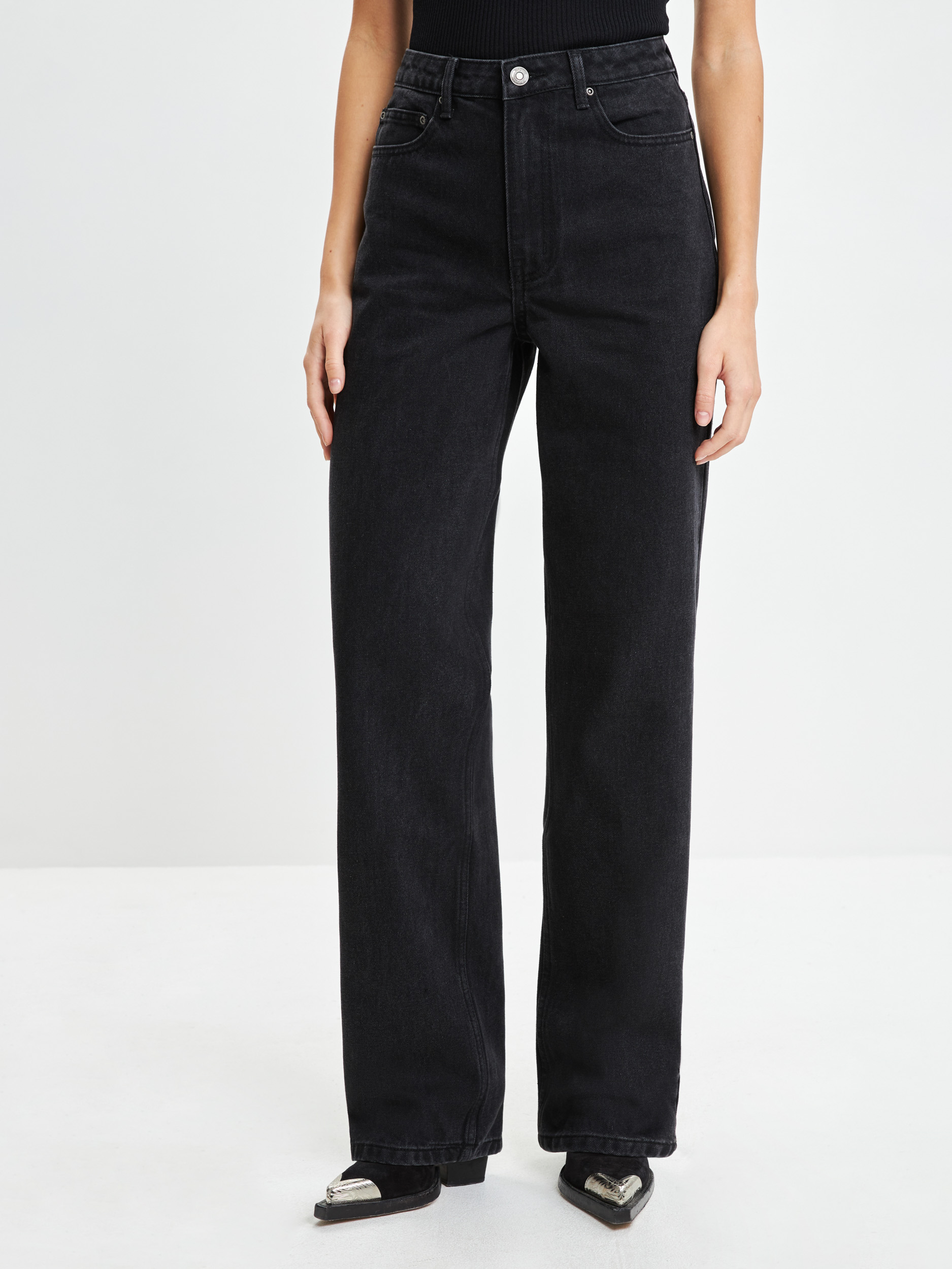 Параметры: Материал (деним): без эластана; Модель джинс на английском: straight; Тип посадки: высокая; Модель джинс: прямые