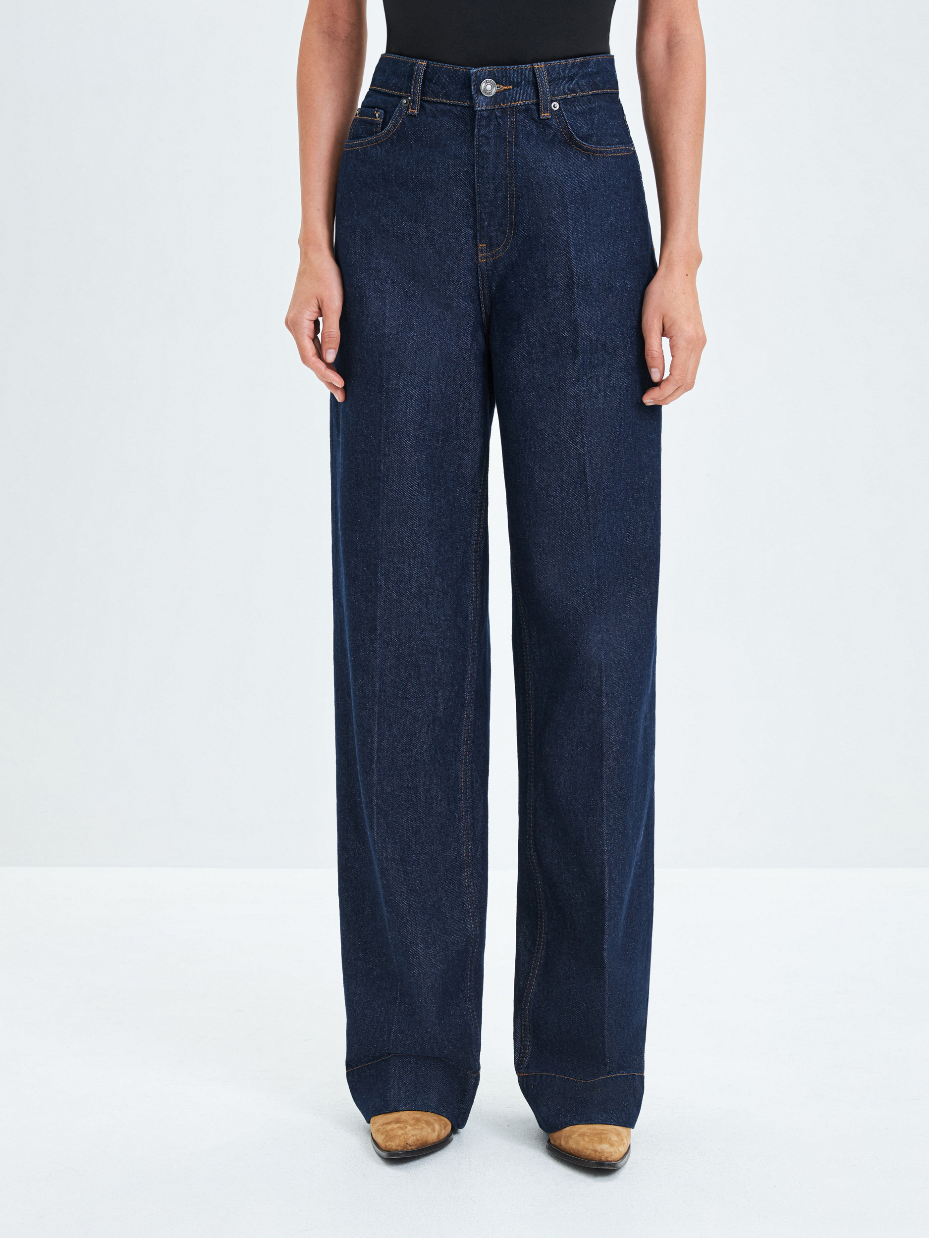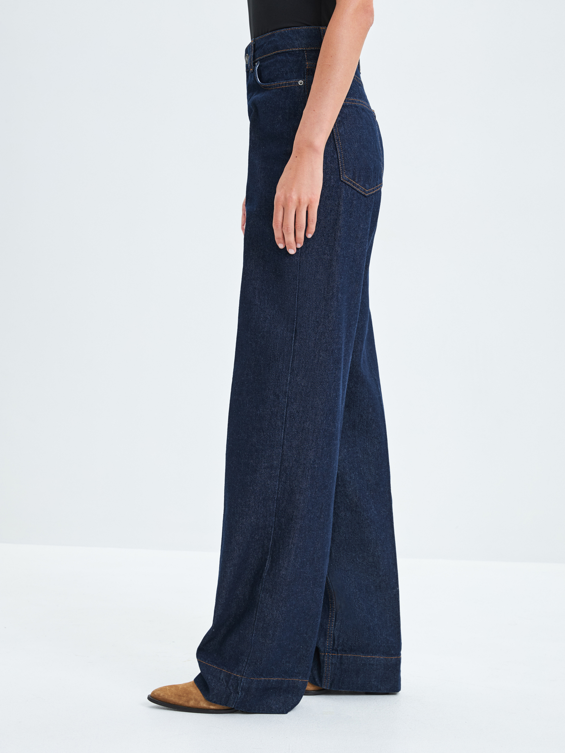 Параметры: Материал (деним): без эластана; Модель джинс: широкие; Модель джинс на английском: wide; Тип посадки: высокая